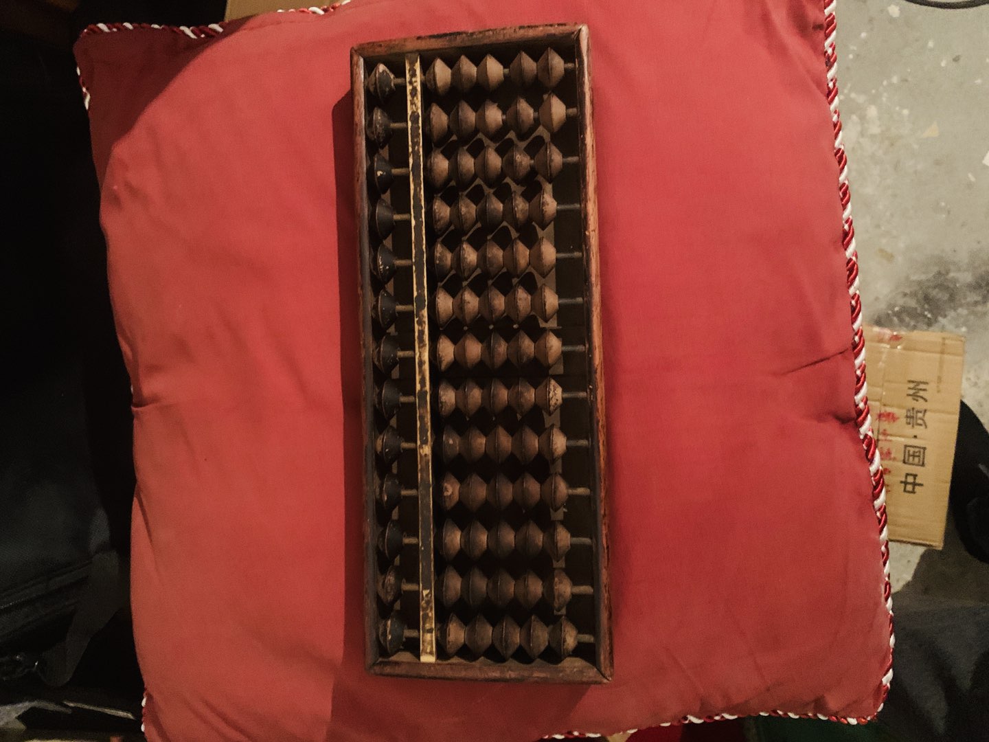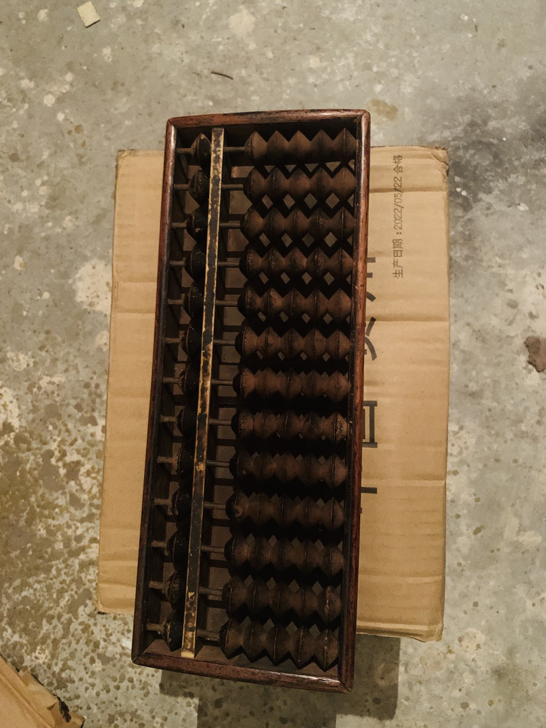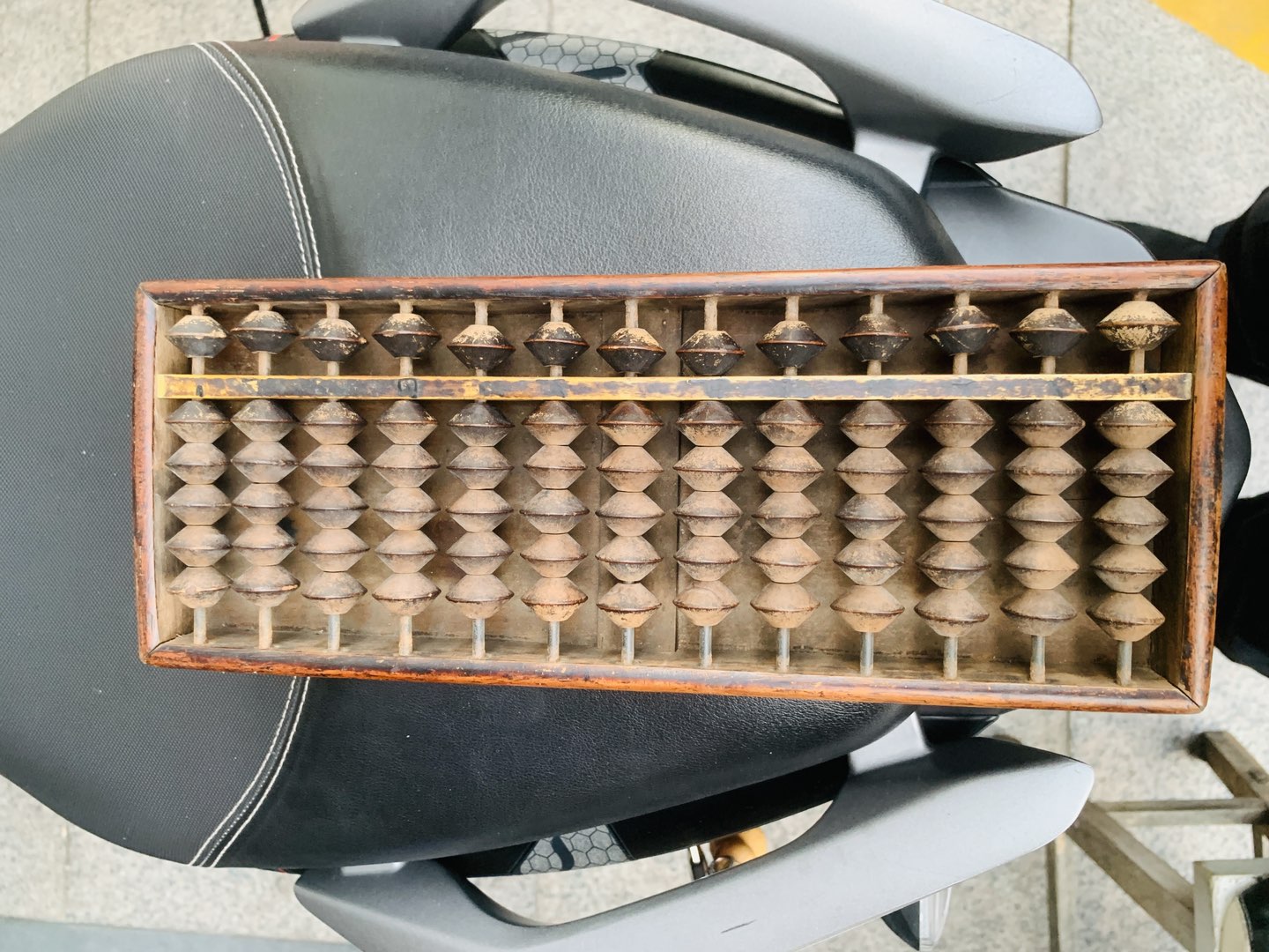 进口算盘,有底板。花梨木、金丝楠木的结合。卯榫国人造不出来的