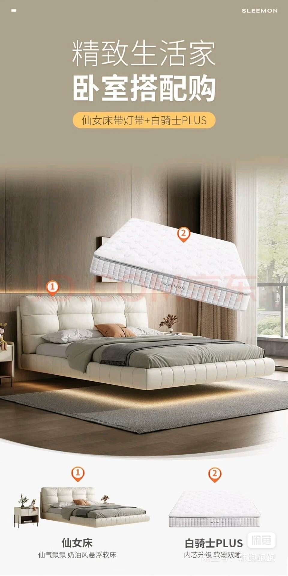 2399元!全新喜临门仙女床+白骑士plus床垫,这个是床+床垫套餐,2m*1.8m,京东自营发货,包邮包入户包安装