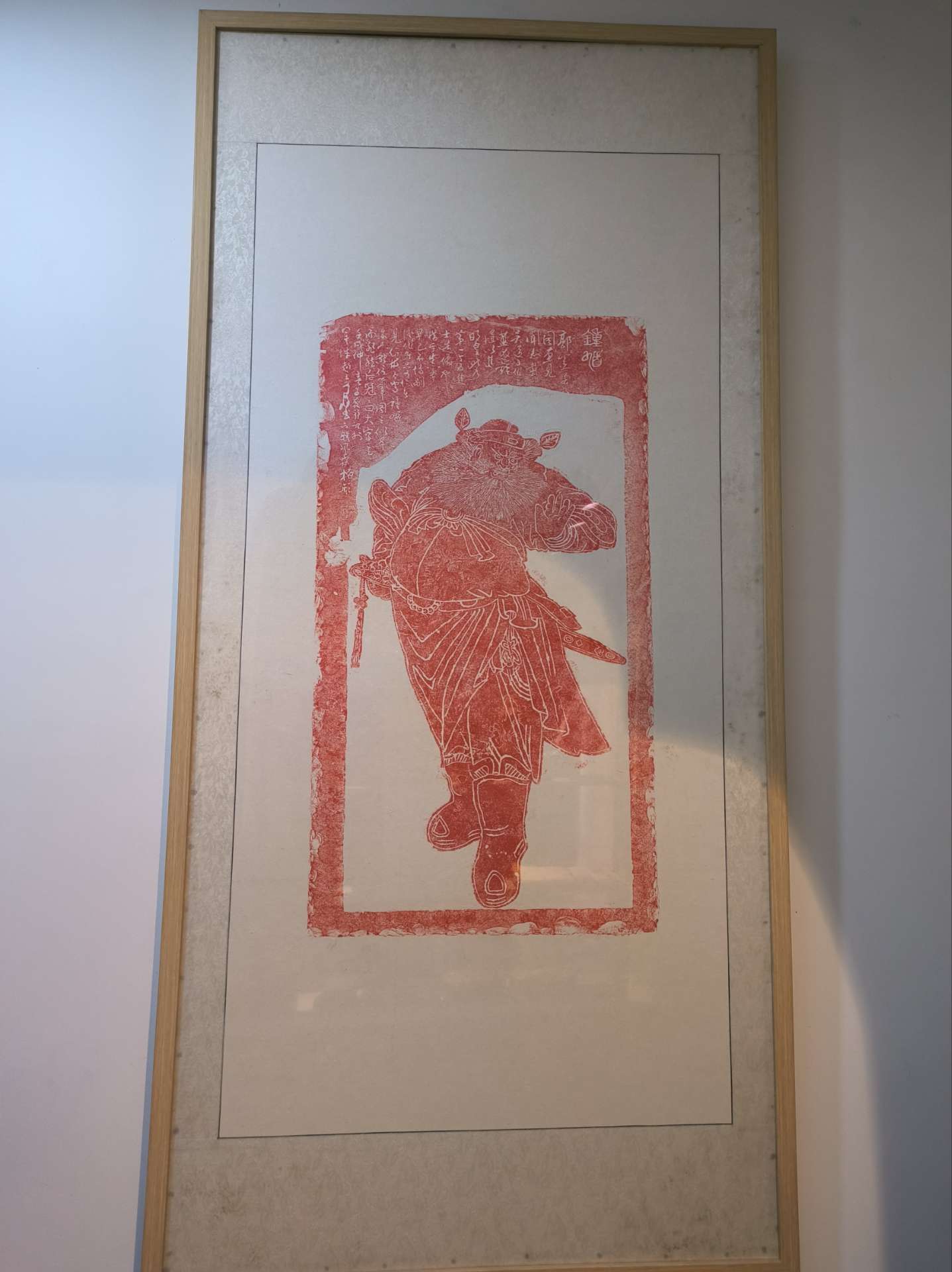 钟馗像朱砂拓片,朱砂和钟馗有镇宅辟邪的寓意,挂在家里或者办公室很好,高度1.8米,已经装裱好了,搬家处理500元,请勿议价,福泰小区,18668991643