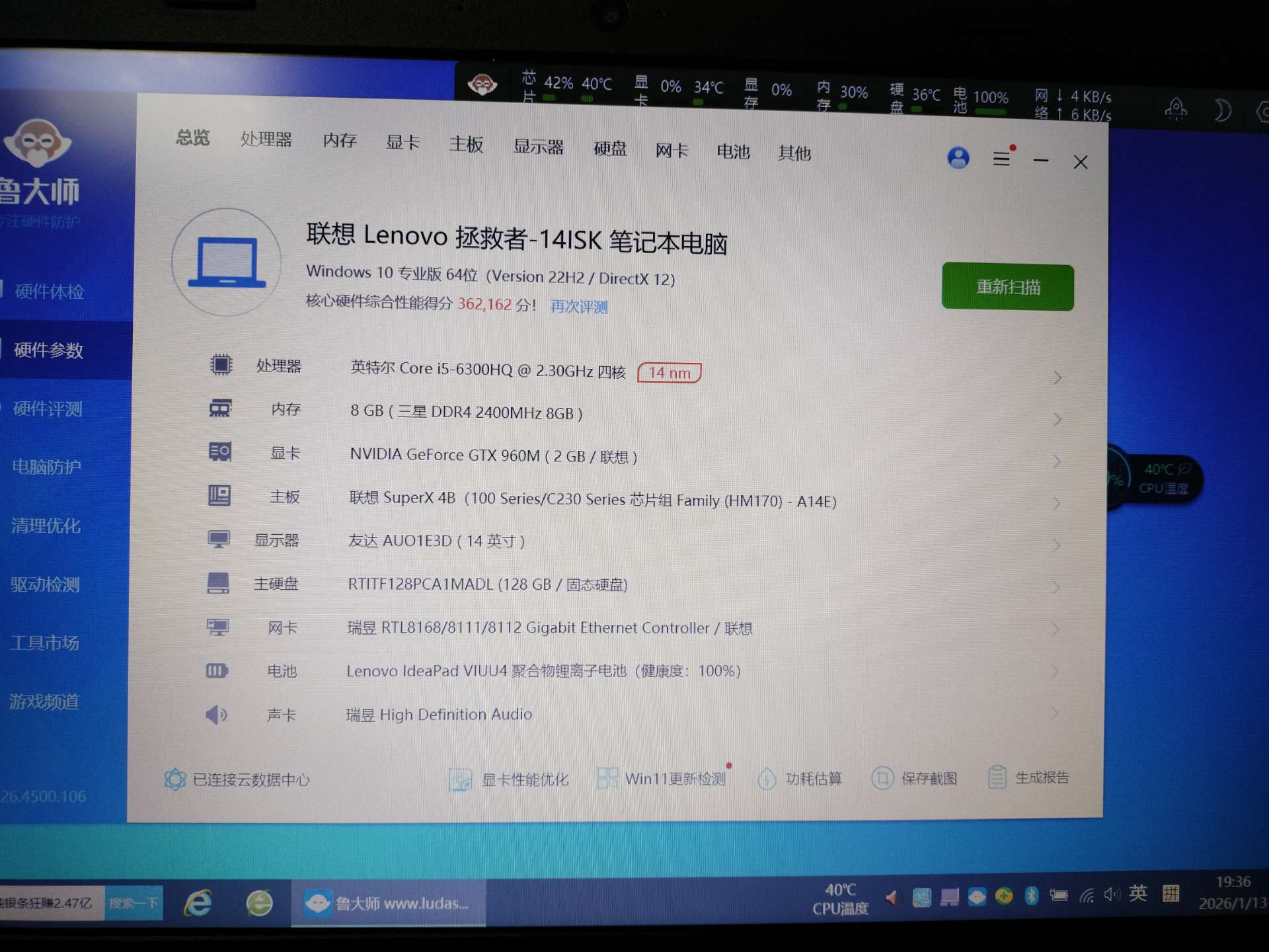 860元 联想拯救者 成色非常新 全新电池 i5-6300H gtx960M 2g独立显卡 128g m2固态硬盘 适合游戏 剪映 三维图 二维图 办公 15668412360微信同号