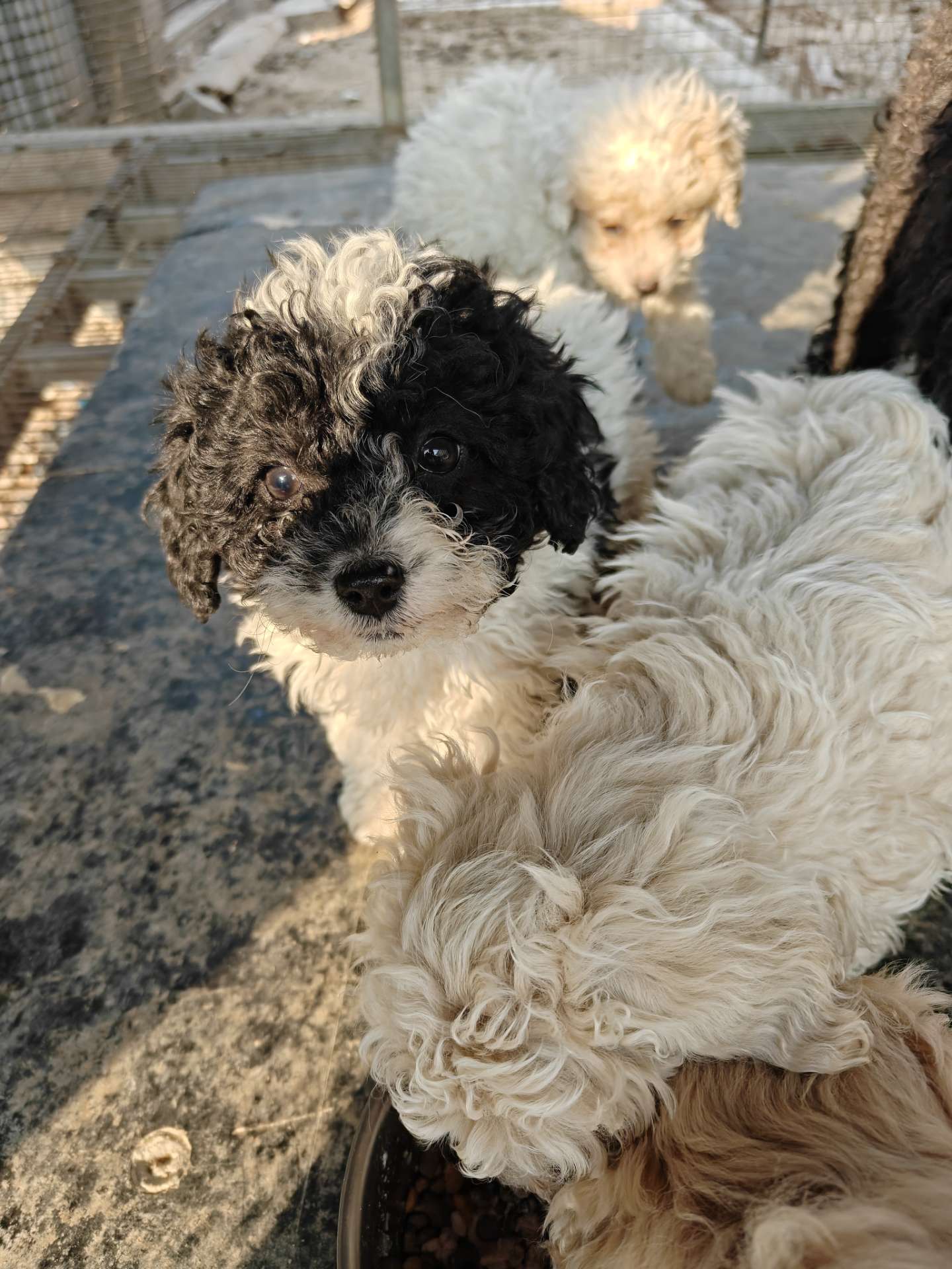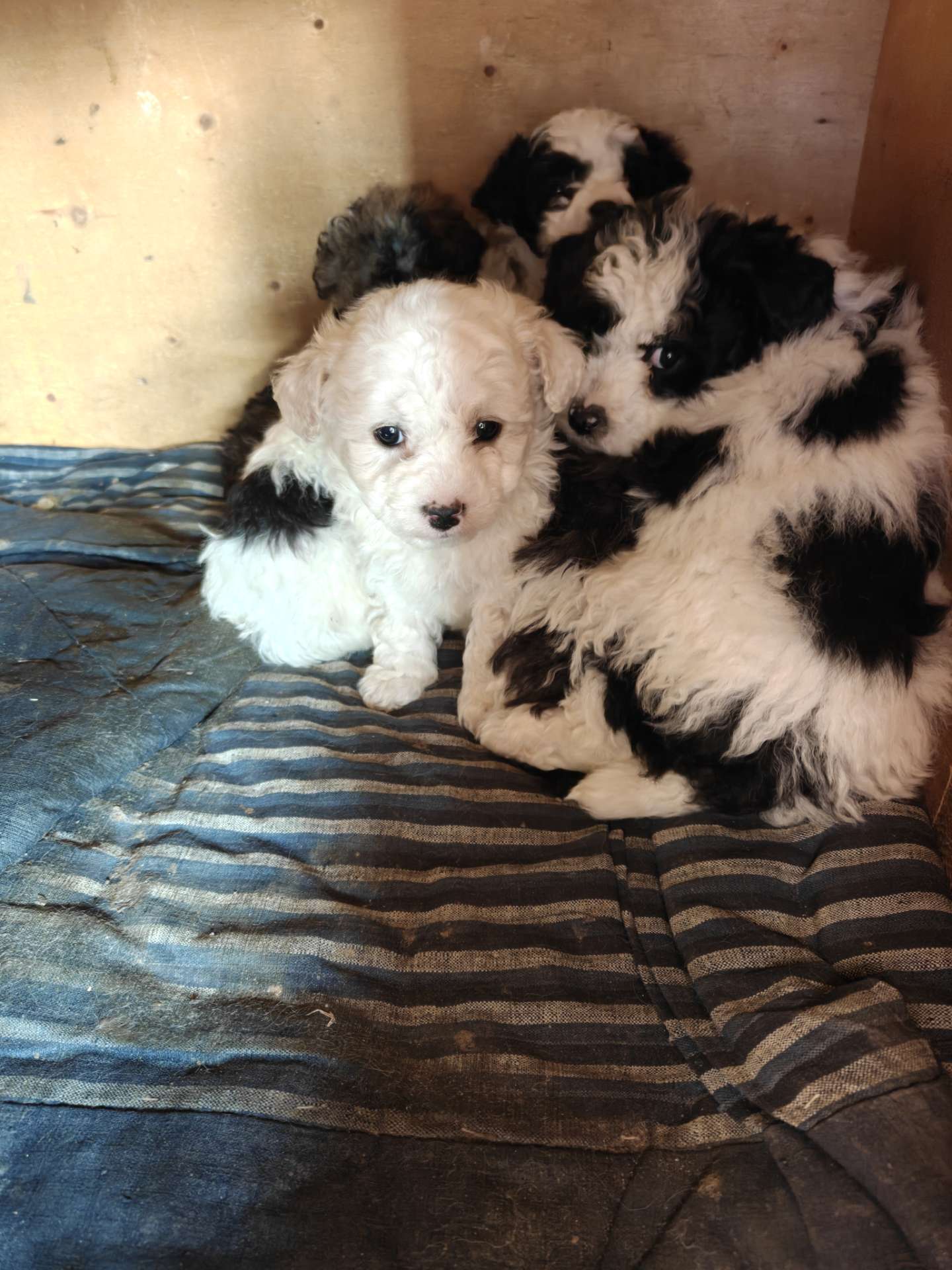 自家花泰迪生的泰迪幼犬,马上两个月大,粑粑灰白花,妈妈黑白花,毛量多,卷毛蓬松,像小毛绒玩具一样可爱。健康活泼粘人,性格好,适合新手养。已经会吃狗粮了,父母品相好,放心接回家。章丘城区内可以送货上门,仅限自提。诚心要的请致电13854166077,不要评论区留言,没时间看