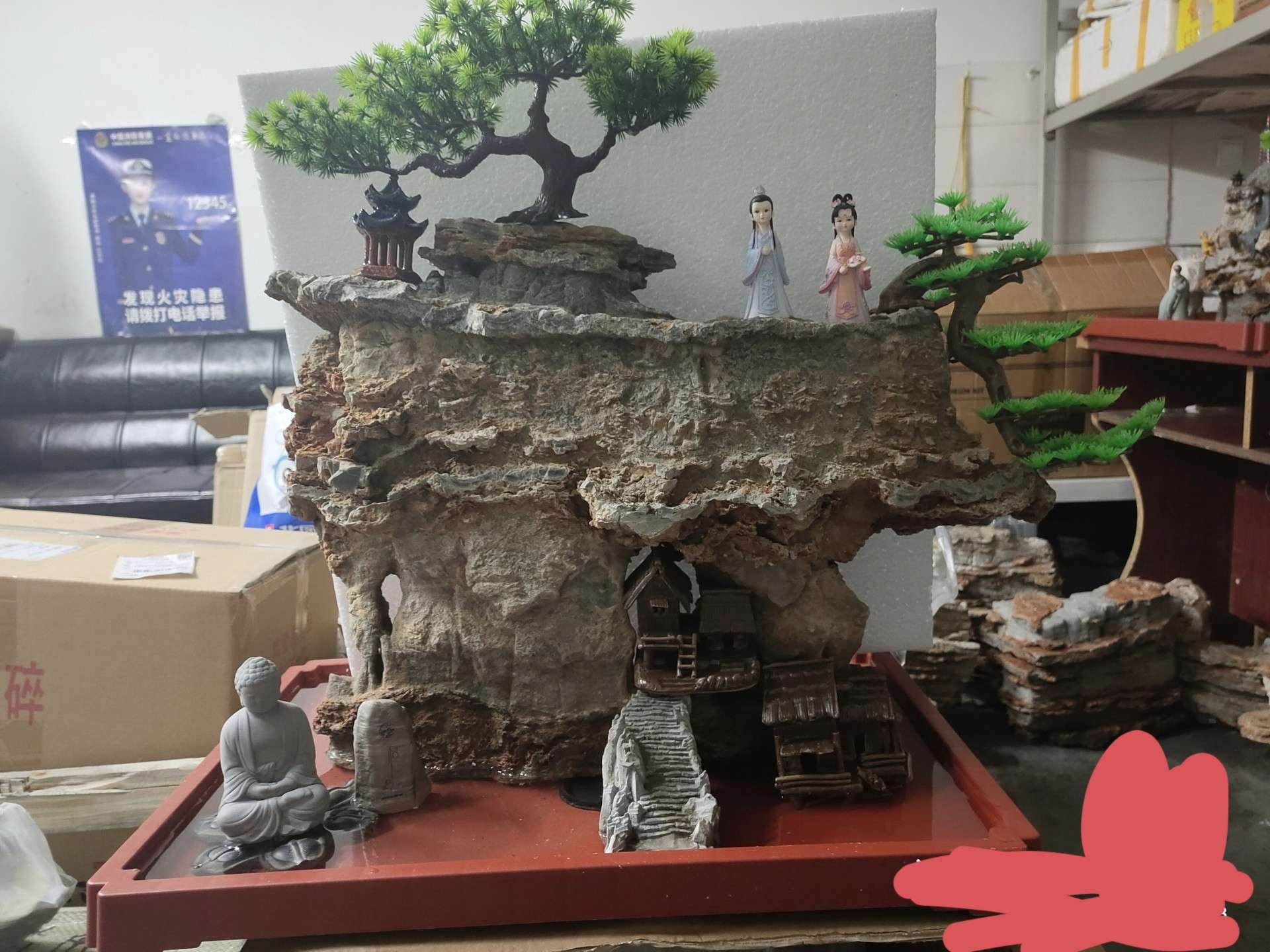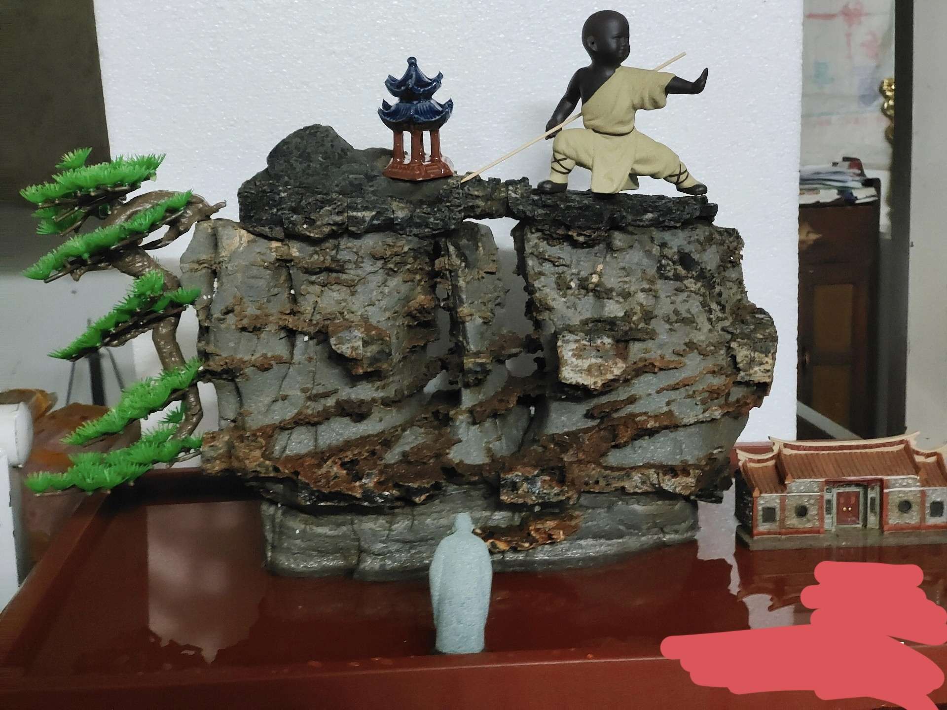 山水景观有山有水整块原石盆景盆或鱼缸造景在章丘附近可送货上门并布置景观。