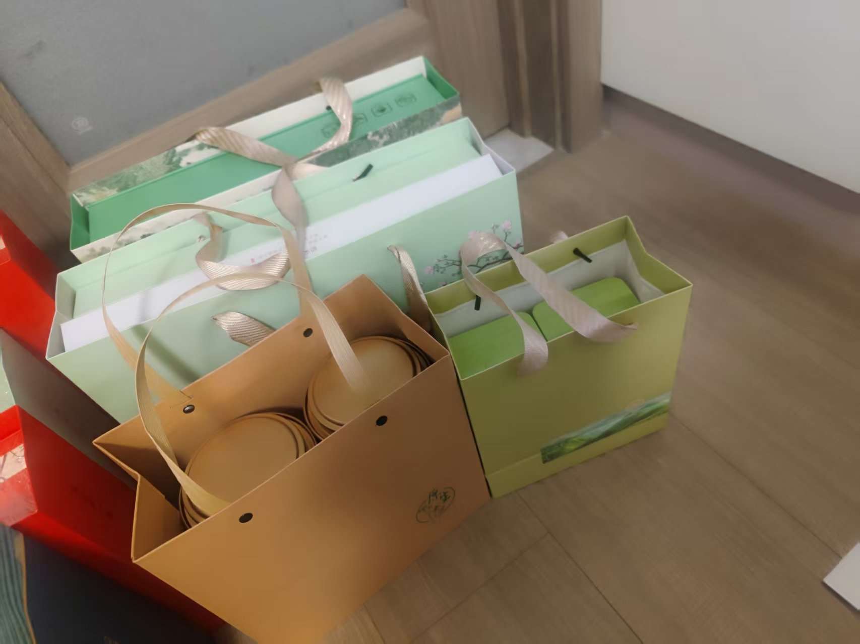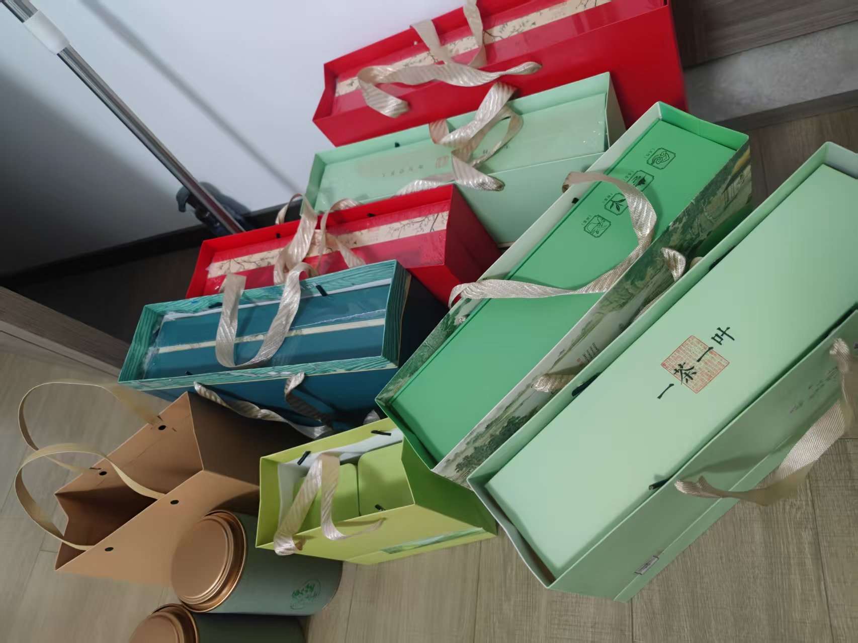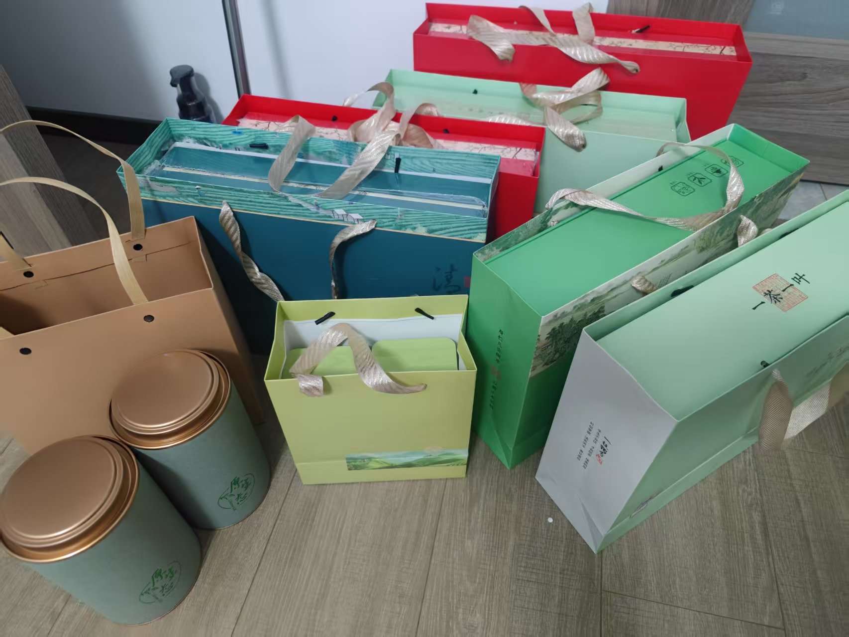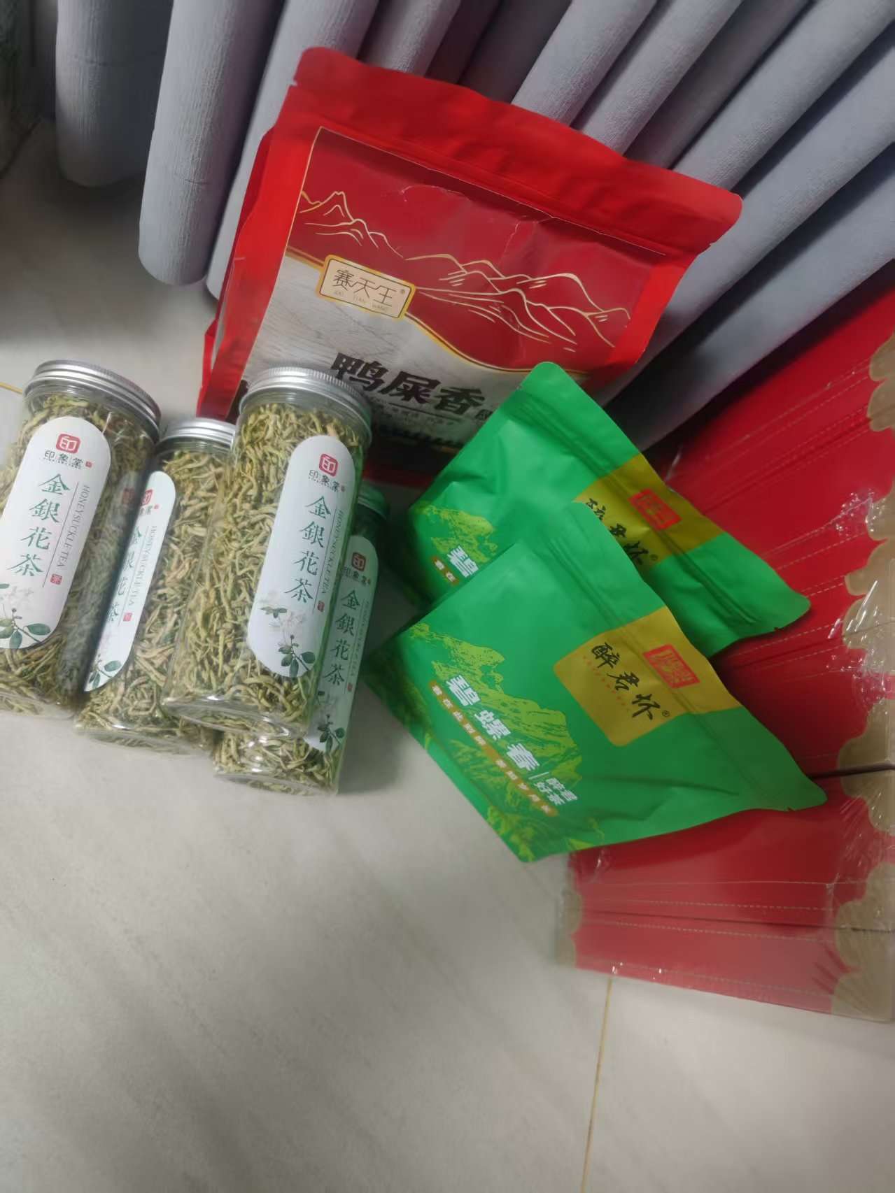 出茶叶礼盒。有精装,简装。大多数茉莉花茶还有几盒大红袍。
