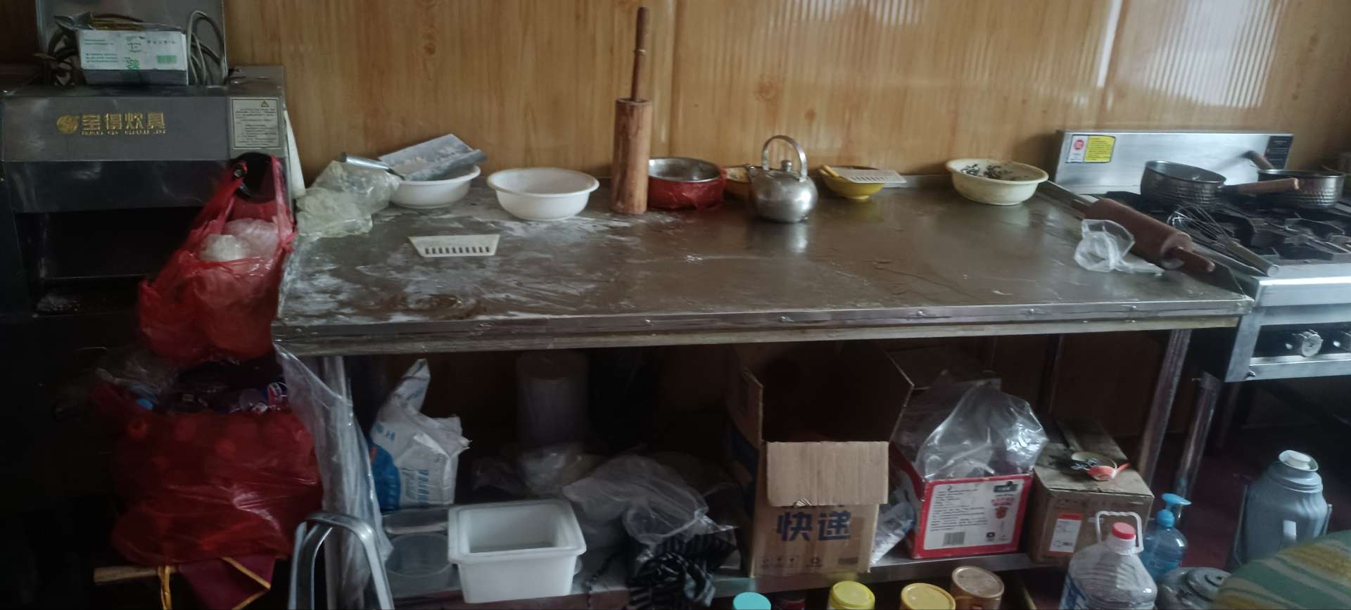 商用油烟机(带净化器),煮面桶,汤桶,电饼铛,电子秤(带铁盒),操作台冰柜(冷藏冷冻),不锈钢桌子,案板。低价处理。