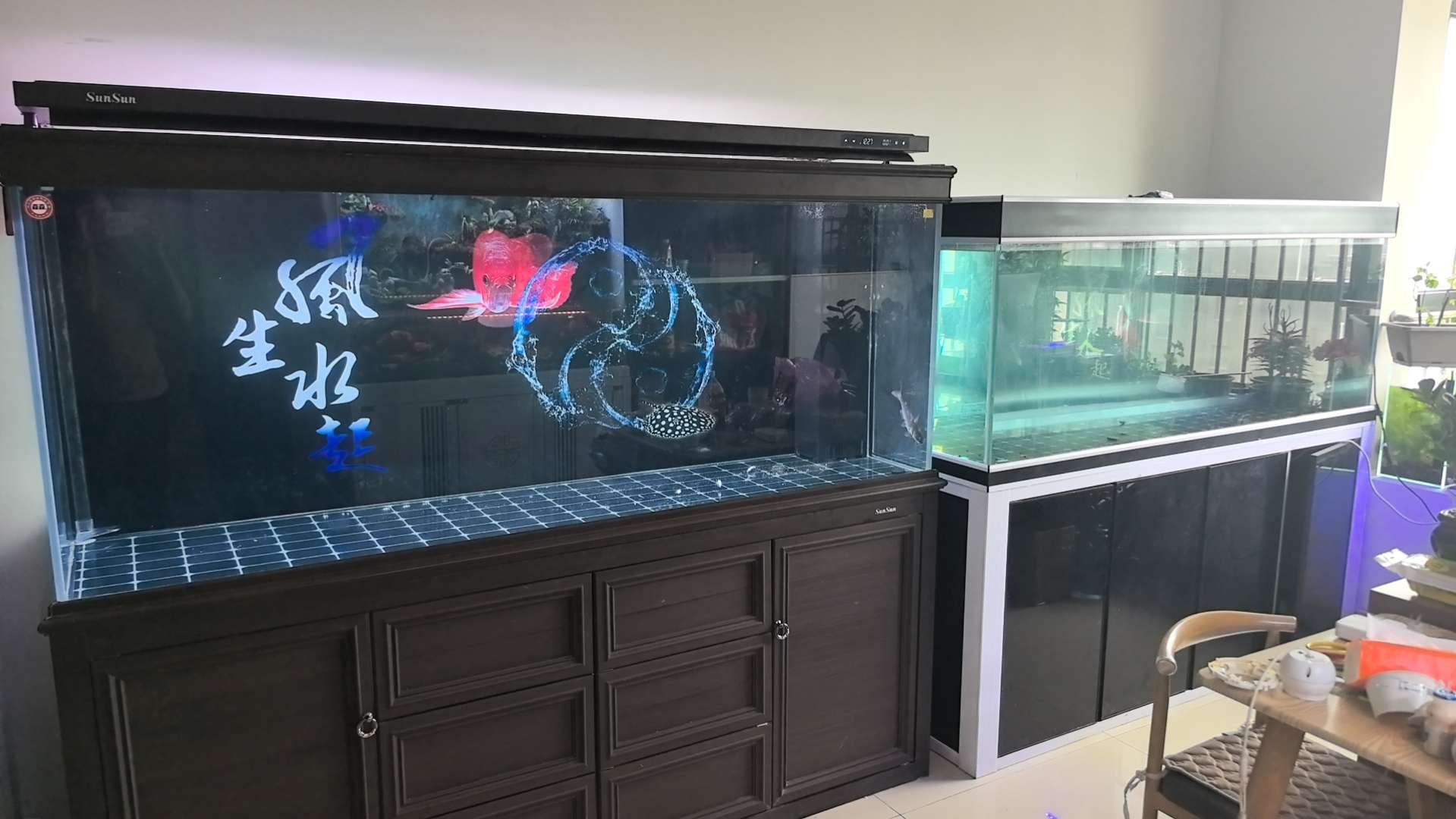 家里地方有限,出一个鱼缸,99新,刷干净了,不漏水,因为家里放不开这么多,忍痛出一个。黑色190*60*170,白色180*75*160。都是超白玻璃加厚下过滤。黑色3500,白色2500不议价,章丘秀水兰庭北区自提