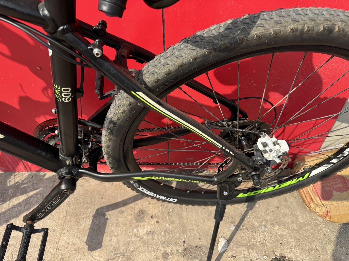 美力达公爵600,前三后九速,禧玛诺全套,带肩控锁死,刚做的保养。 1200自提