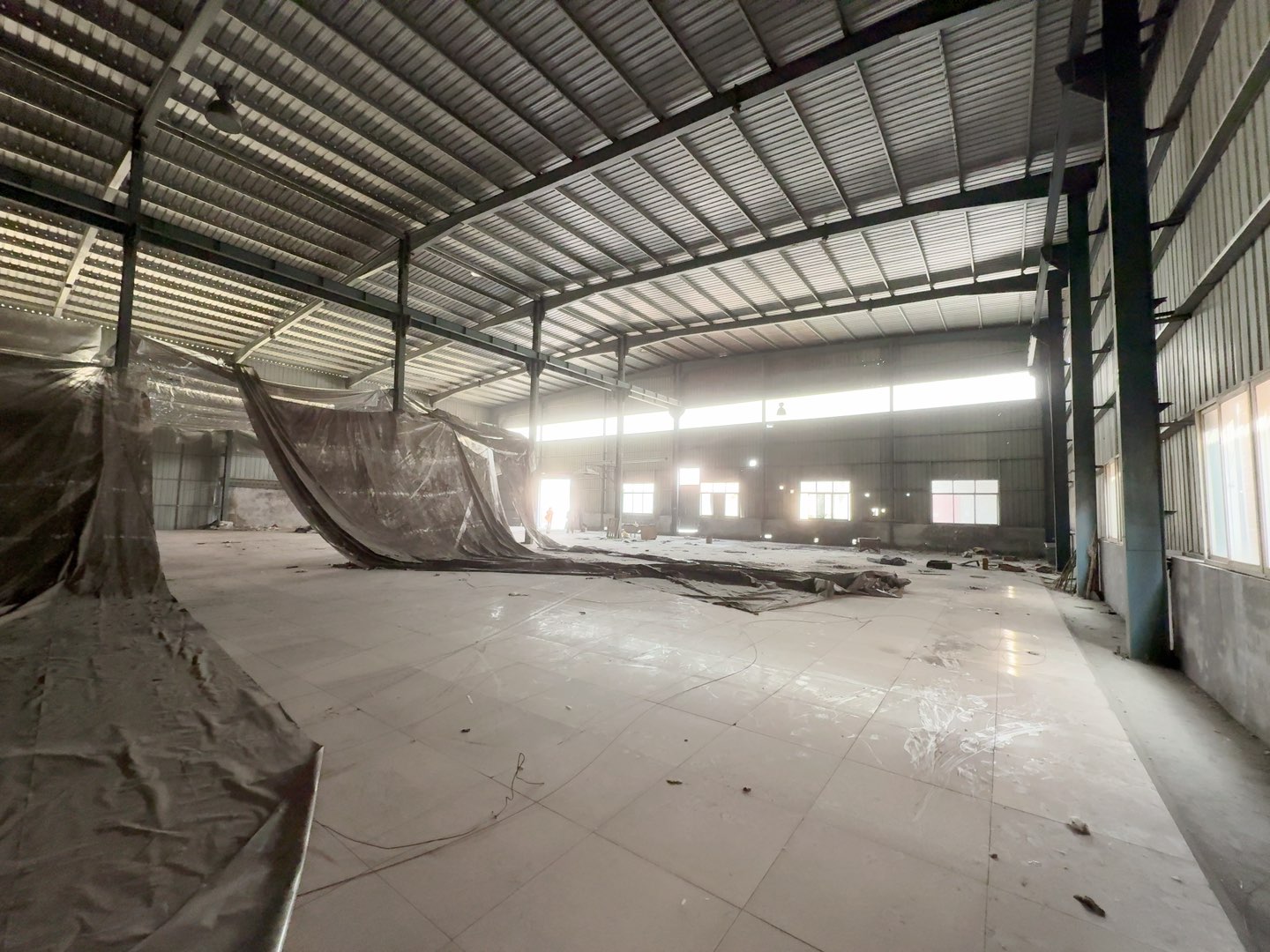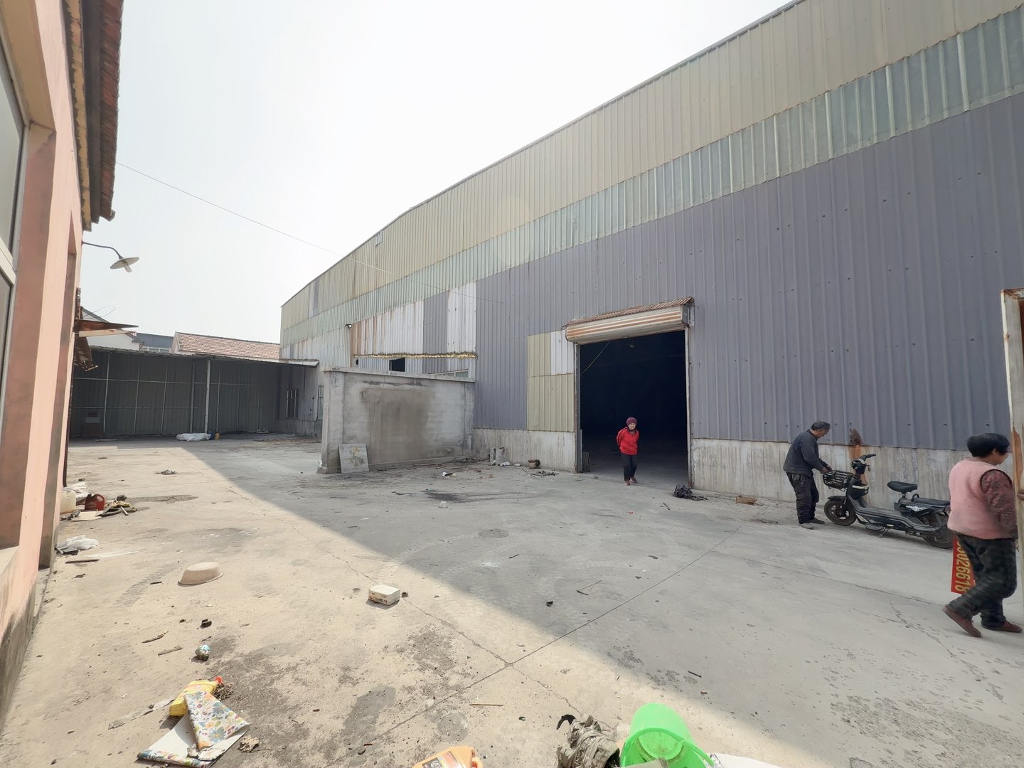 厂房1200平左右,院子500多平,独门独院,带办公,前后两个大门,17米大车可以进出,檐高9米多,可以装行车,厂房内瓷砖地面,收拾一下就干净了,