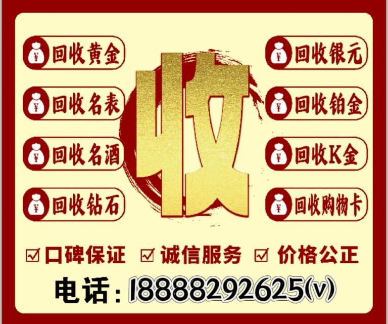 高价回收:黄金,K金,铂金,名表 奢侈品钻石,玉器,名包,银元,老酒,名酒,老钱,茅台,礼品,购物卡,加油卡,冬虫夏草,24小时免费上门服务,实体大店,当场支付,诚信经营18888292625微信同步