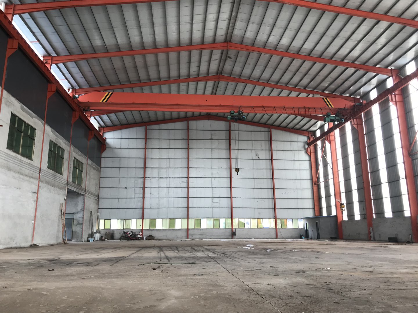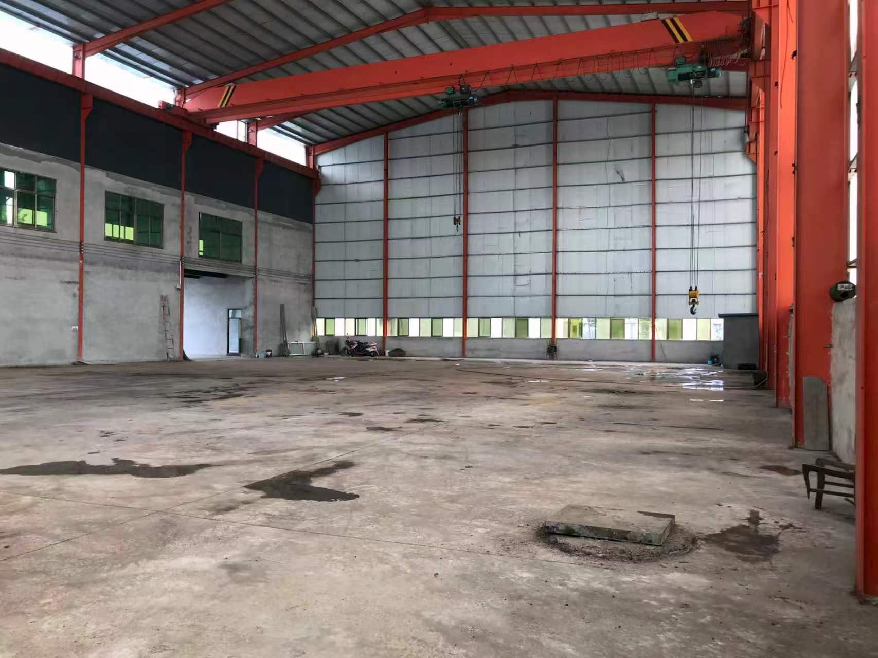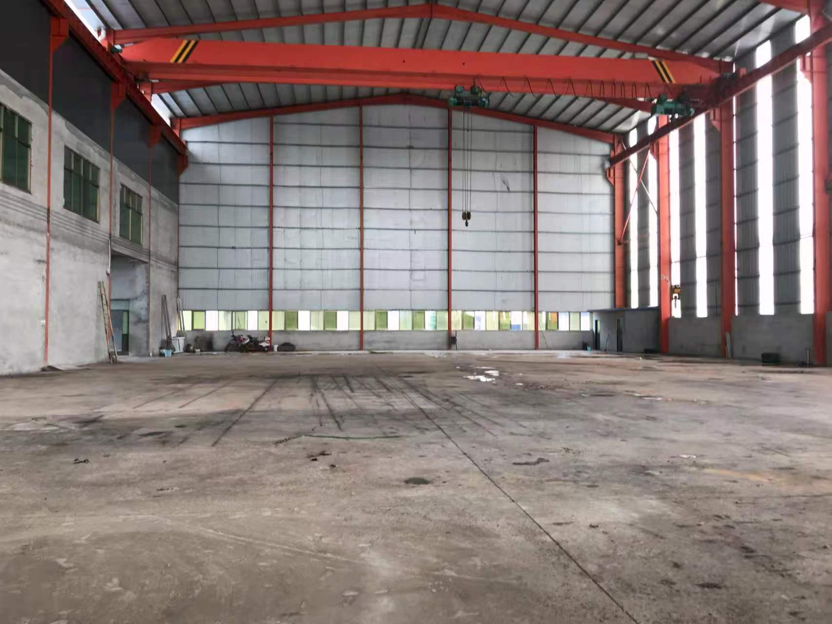 厂房1200平米、跨度一跨28米、高度16米、檐高14米、一部航车两个葫芦10吨、20吨的。国有出让工业用地、手续齐全可办理环评手续、高规格建设、大货车出入方便。厂房可做各种机械生产加工、仓储。另有沿街三层办公楼、一楼可做展厅、二楼三楼可办公。有250伏变压器、用电便利。位置佳、交通便利。联系电话18905416789