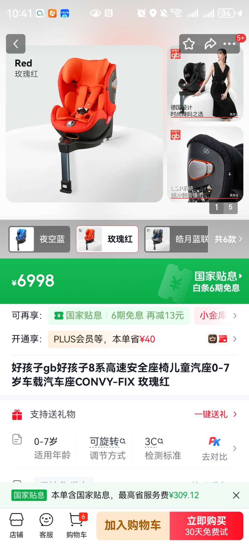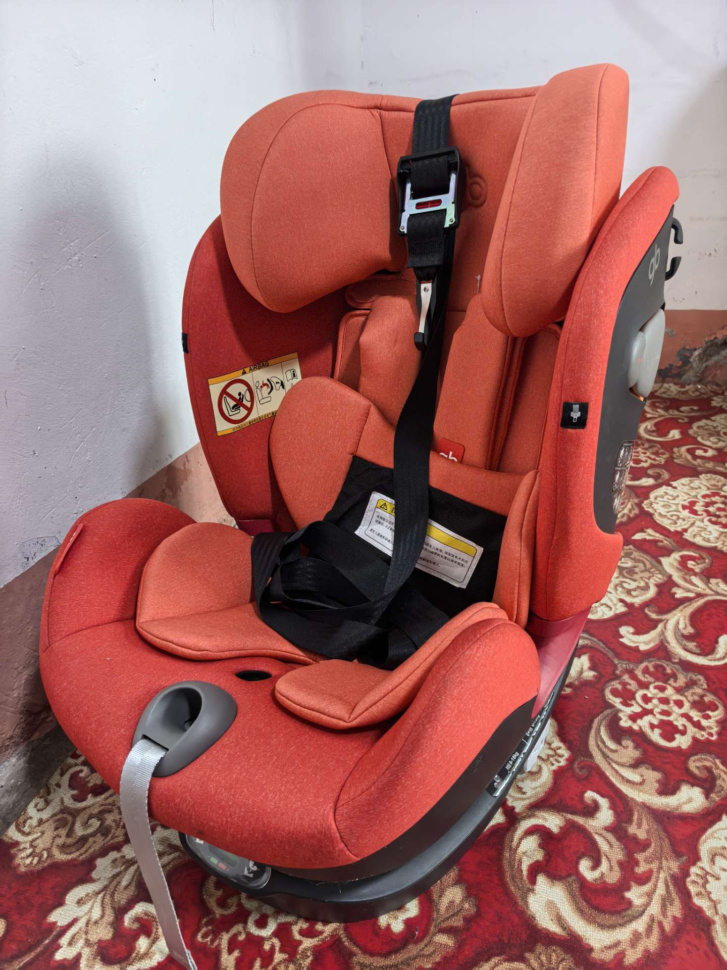 全新宝宝安全椅,橙色,一次没用过,带安全带,ISOFIX接口