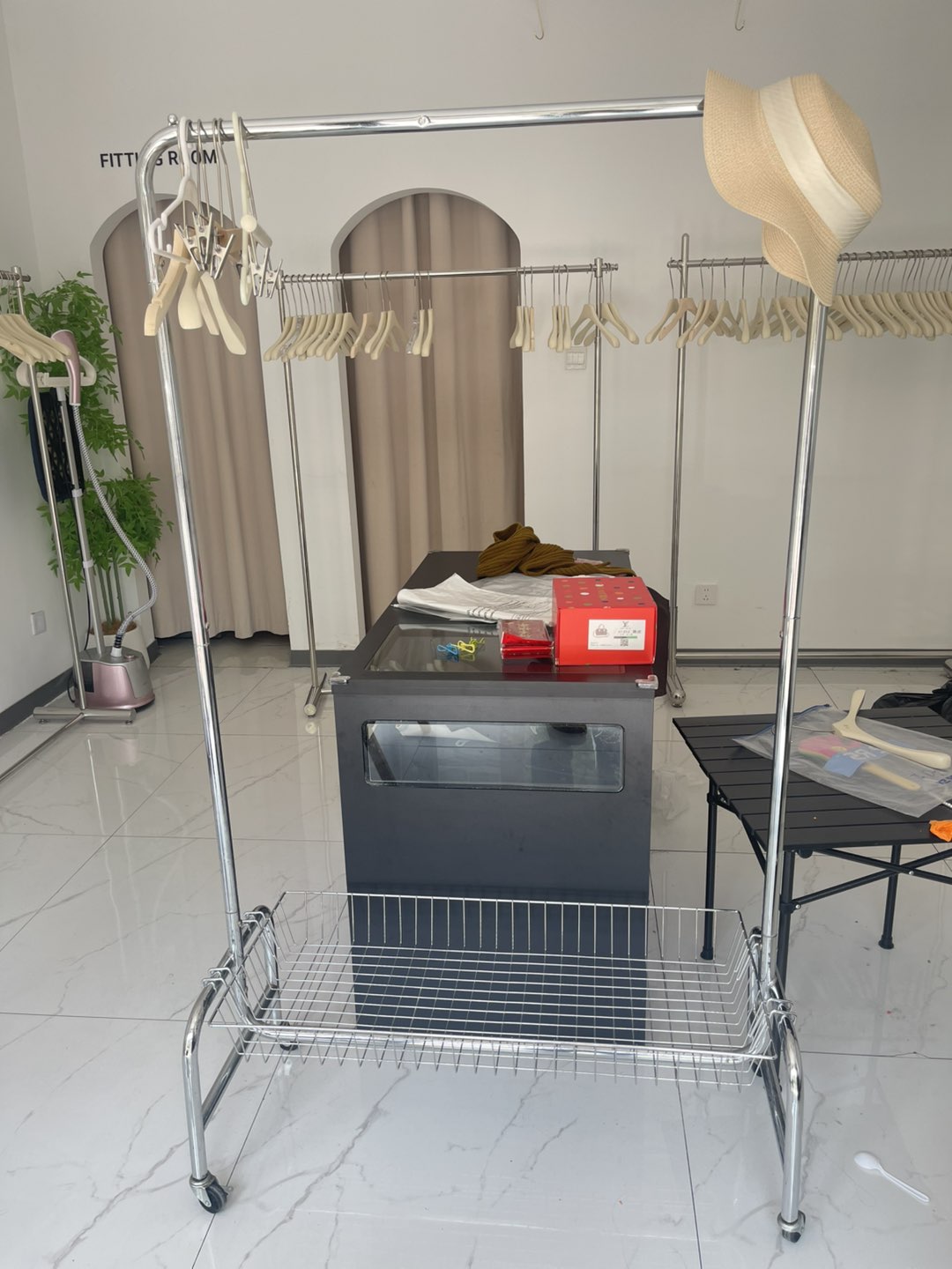 带小筐的架子,一个中岛台