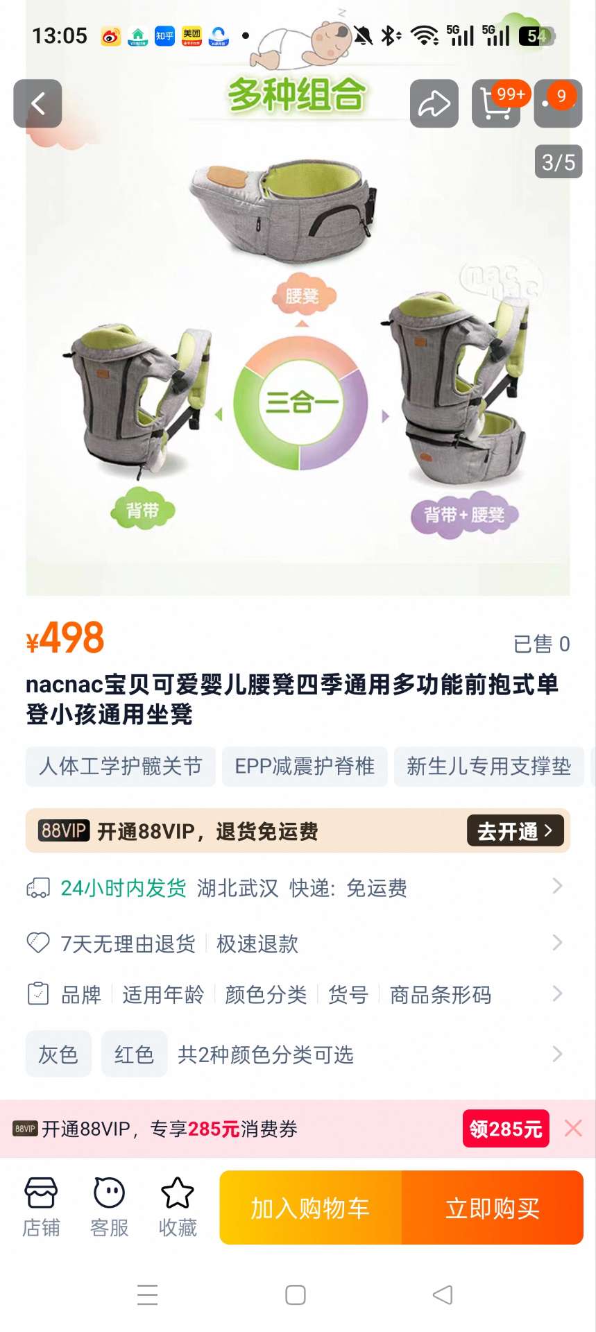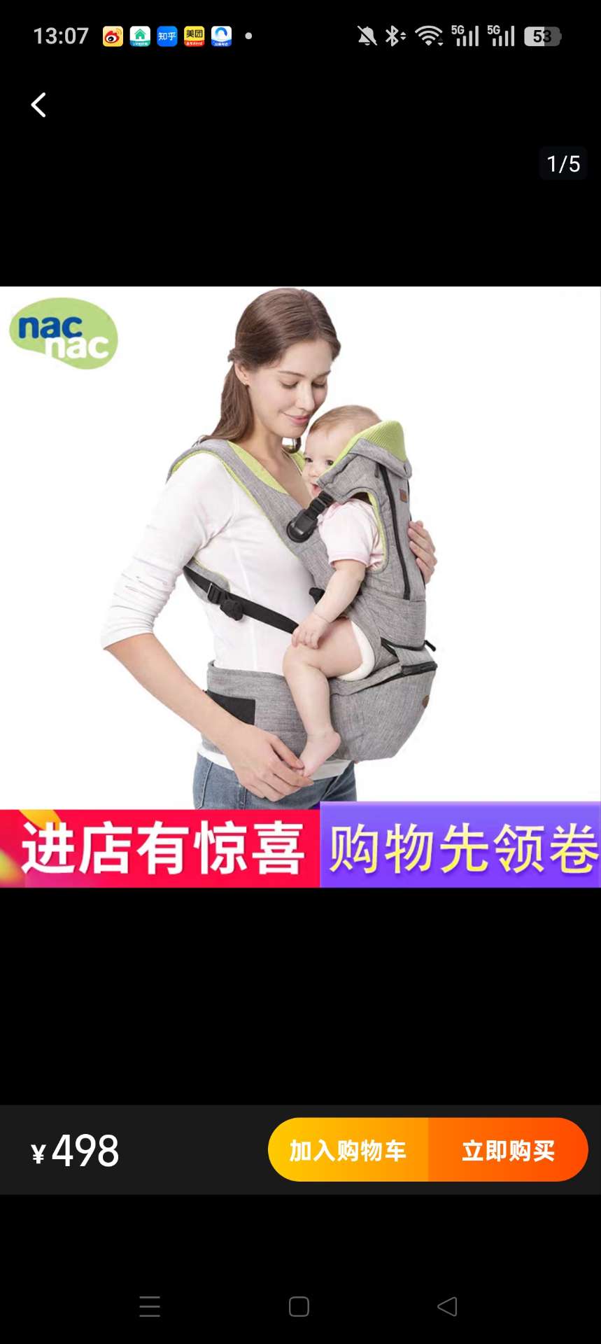 nacnac带娃腰凳背带,没怎么用很新,处理80