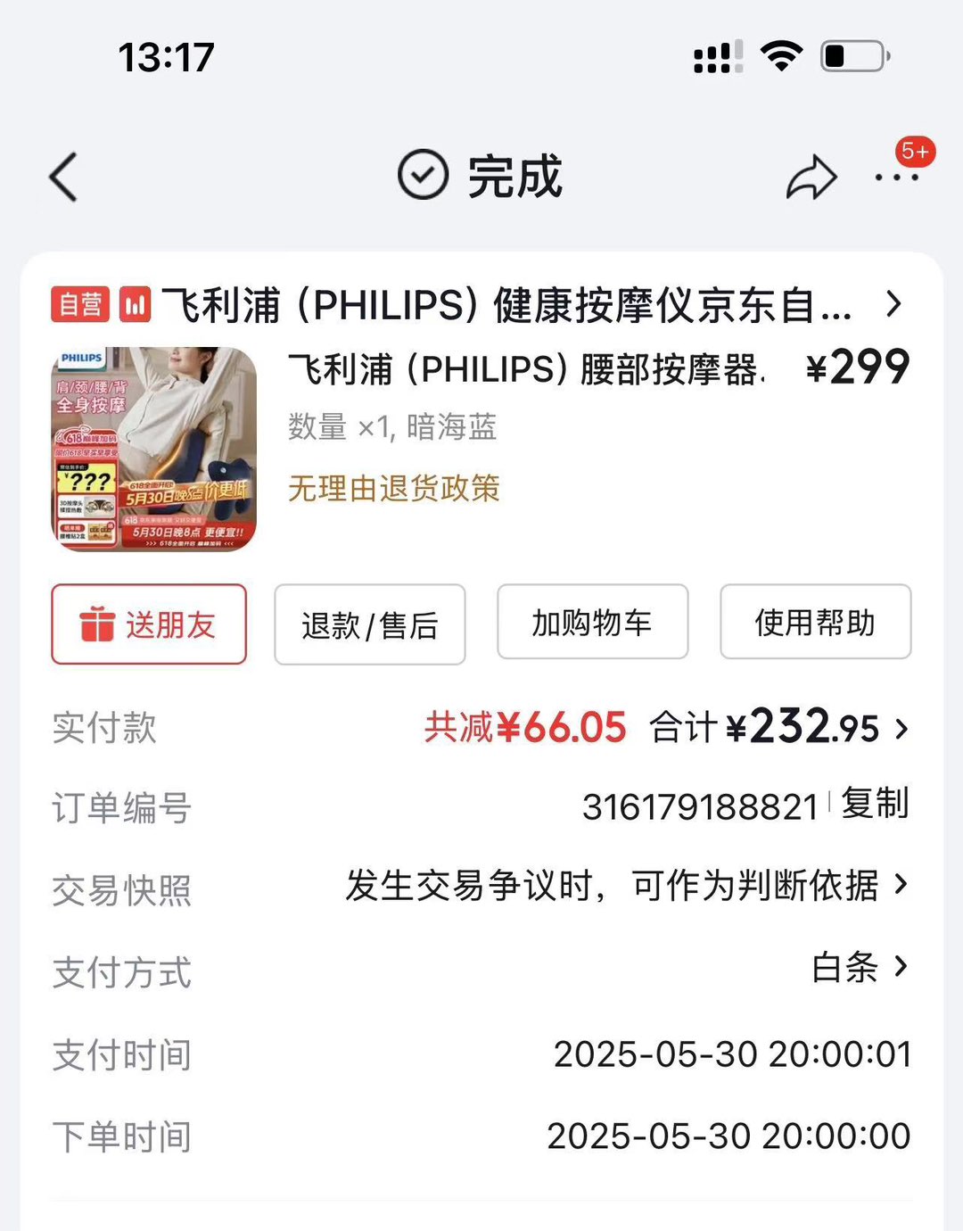 低价 110 ,原价230 入手的,飞利浦PPM3101B腰背按摩器,肩颈、腰背都能用,搬家不带走 ,仅使用过四五次,需要自提。