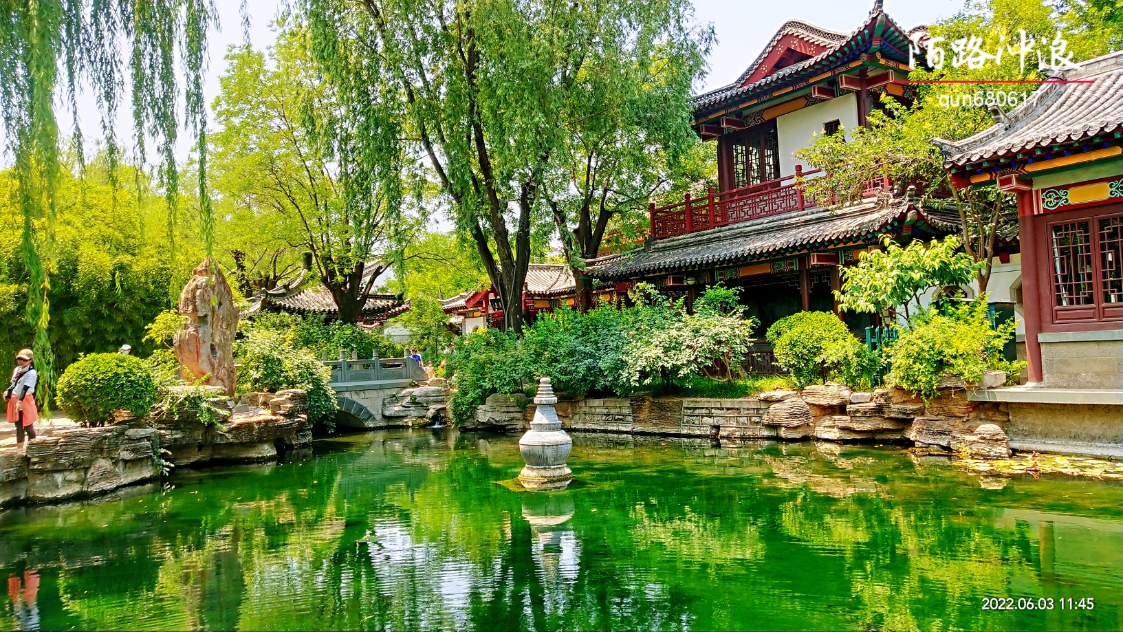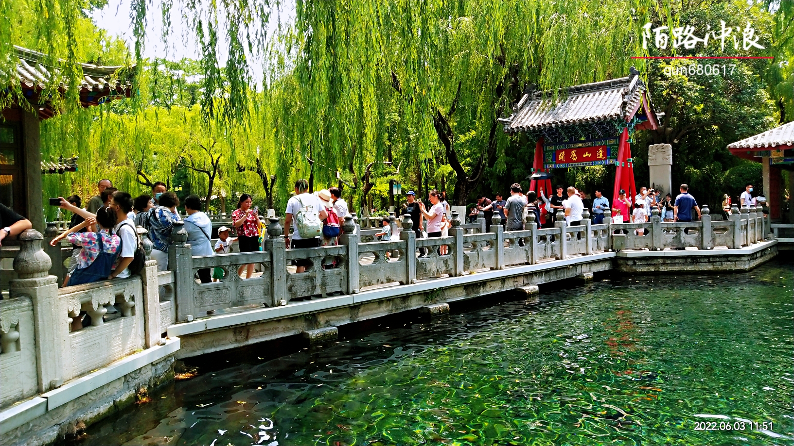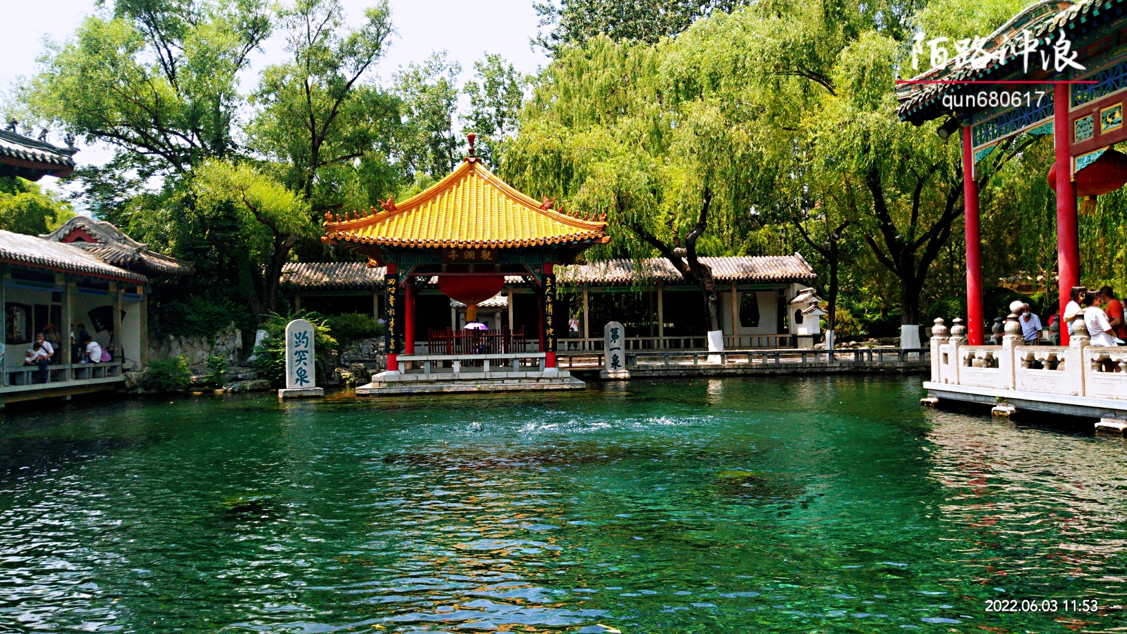 盛夏,趵突胜境,持续上升的水位,使得公园里的大小泉池满满的,到处是美如珠玑的泉水滚动,与园中翠绿的林木交相辉映,宛若人间仙境,令人陶醉。