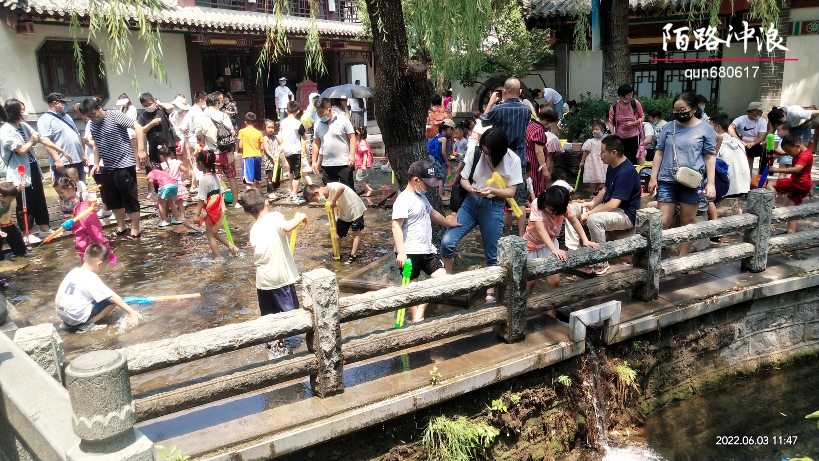 夏日炎炎——趵突胜境游客戏水觅清凉