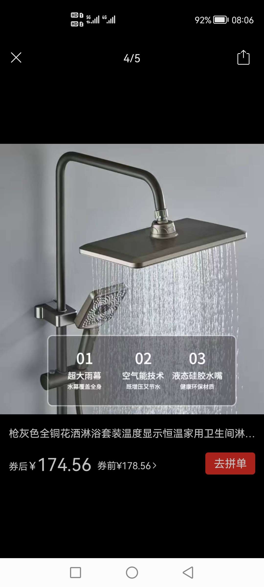 出全新的淋浴喷头套装,纯铜阀体质量很好。