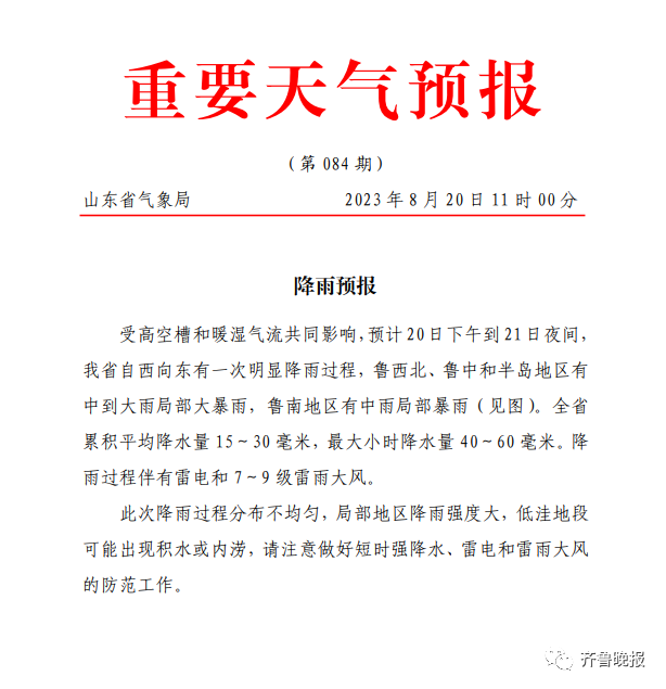 章丘又有大雨!重要天气预报发布...