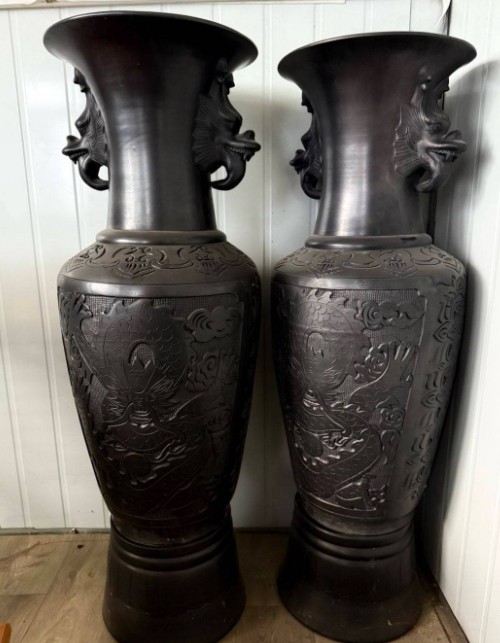 详情:手工龙山黑陶浮雕黑龙工艺品,中国非物质文化遗产,中国龙山黑陶,全手工制作,总高105厘米