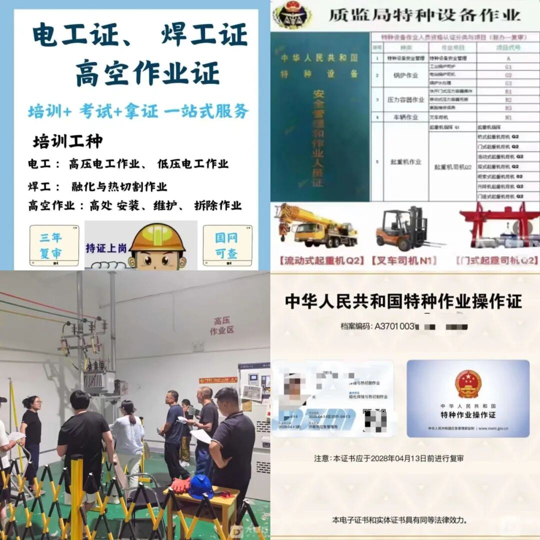 济南特种作业证招生,含应急 / 质监工种,需持证,初中学历可报,另有多证培训。