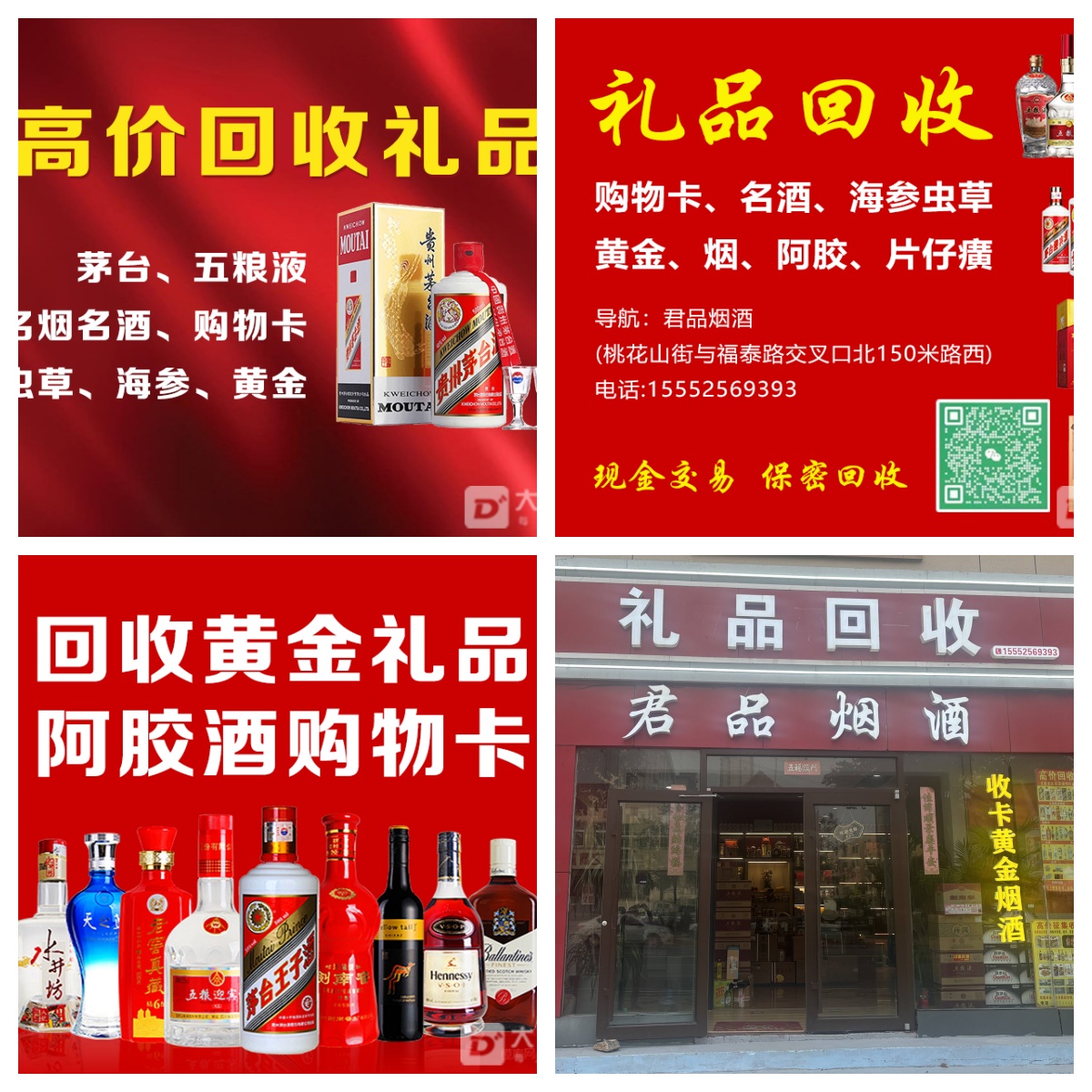 主营业务:高价回收各类礼品、茅台、五粮液、名烟名酒、购物卡、虫草、海参、黄金、阿胶、片仔癀、一卡通96折起。同时低价出售各类名烟名酒购物卡。导航:君品烟酒
