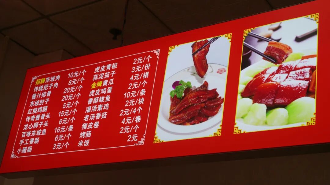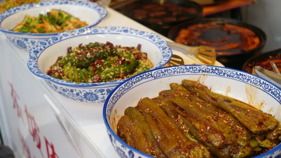 除了这两样镇店之宝,还有鸡腿、狮子头、青椒、花干等很多配菜;老板自制的黄瓜、茄子凉菜;每天现炒的炒菜,想吃啥就买啥。