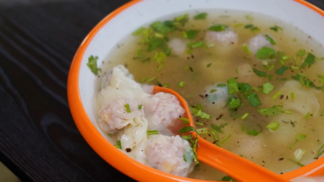 全家福的是随机7、8种馅料,就像开盲盒一样充满惊喜!每咬一个都是不同的风味体验。最喜欢的是玉米鲜肉和芝士鲜肉的,尤其是芝士鲜肉很有特色,这个在其他店里还真没错吃过。再来口馄饨汤,果然够鲜!不愧是熬了两个多小时的,味道就是跟普通的不一样。