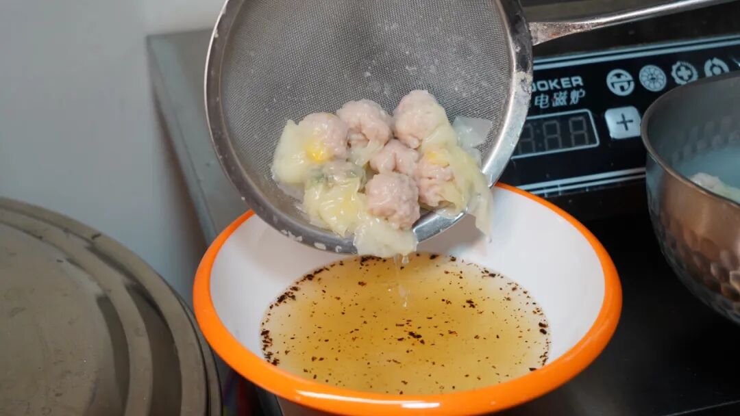 去的时候是下午,在阳光的加持下,一进店感觉特别温馨。再往里走,就能看见阿姨在手工现包馄饨。薄如蝉翼的皮儿裹着饱满的馅料,每一个都捏得扎实又匀称。看见我们来,阿姨连忙招呼,跟我们介绍馄饨很干净,什么也没添加。