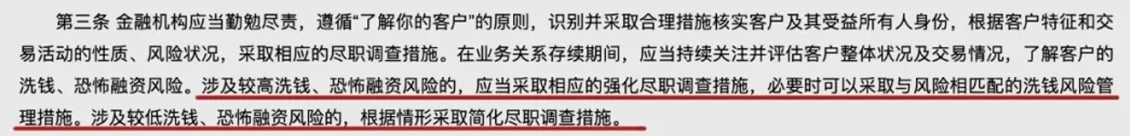 专家表示,管理办法强调金融机构开展客户尽职调查要与风险相适应,避免采取与洗钱风险状况明显不匹配的措施。