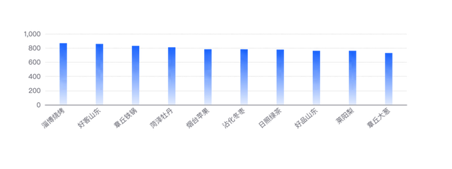 虽然网络关注度的行业均值还处于“浅水级”,但部分品牌的网络关注度仍表现十分出色,其中,达到“全国关注”水平(3级及以上等级)的有9个,即淄博烧烤、章丘铁锅、菏泽牡丹、烟台苹果、日照绿茶、莱阳梨、章丘大葱、金乡大蒜、黄河口大闸蟹。17家品牌的网络关注度达到了2级(“区域关注”)水平,即好客山东、沾化冬枣、好品山东、单县羊肉汤、栖霞苹果、潍坊风筝、平阴玫瑰、淄博陶瓷、胶东花饽饽、微山湖大闸蟹、崂山茶、肥城桃、苍山大蒜、大泽山葡萄、汶上芦花鸡、泰好吃、长山山药,说明在部分区域有一定知名度。有129家品牌的网络关注度处于最低一级(“零星关注”)水平,意味着品牌关键词的搜索频率低,品牌知名度有待提升,希望各品牌能够加强传播内容策划,提高吸引力。