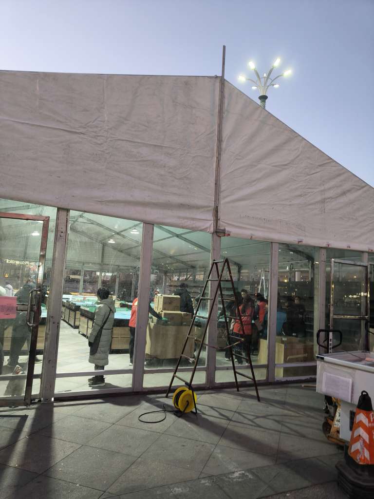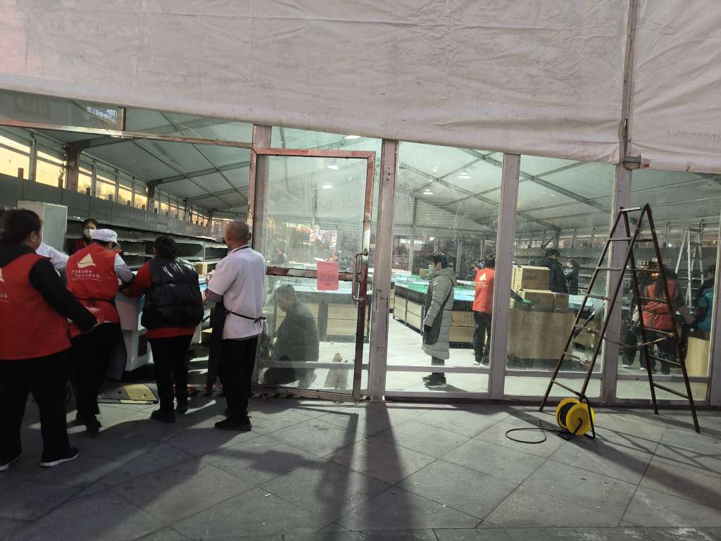 昨晚下班后撤货,今天上午撤架子,下午一个小型的超市拔地而起,都是厉害之人啊!