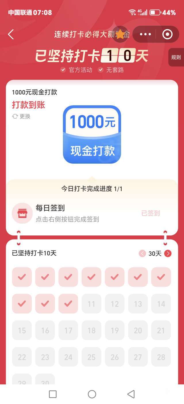 支付宝新推出了一个项目,连续签到可以得到相应奖金,我挑战最多的,希望