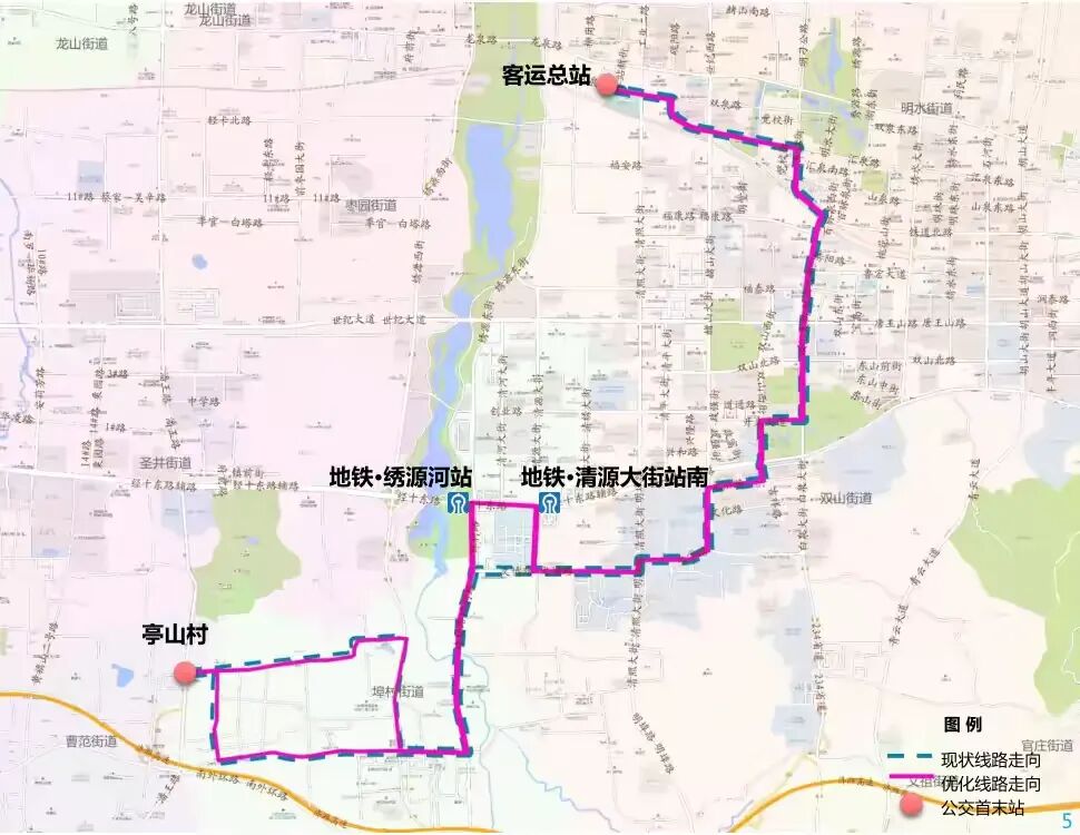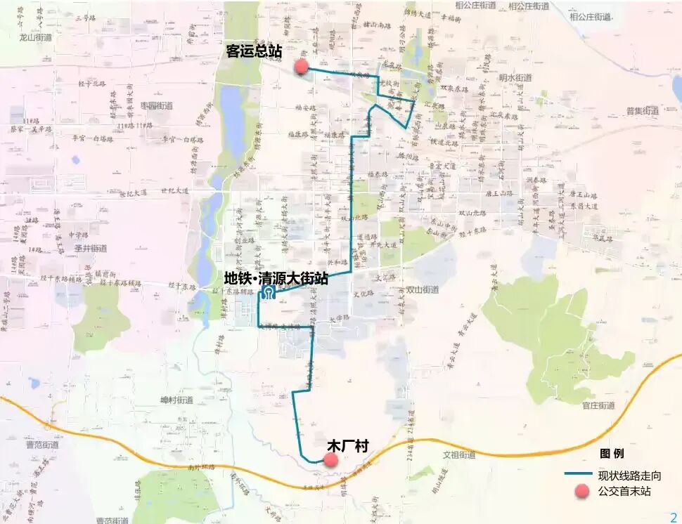 (1)优化内容:整体线路走向不变,优化站点设置,进驻地铁·清源大街站停靠运行。其他线路站点不作调整。