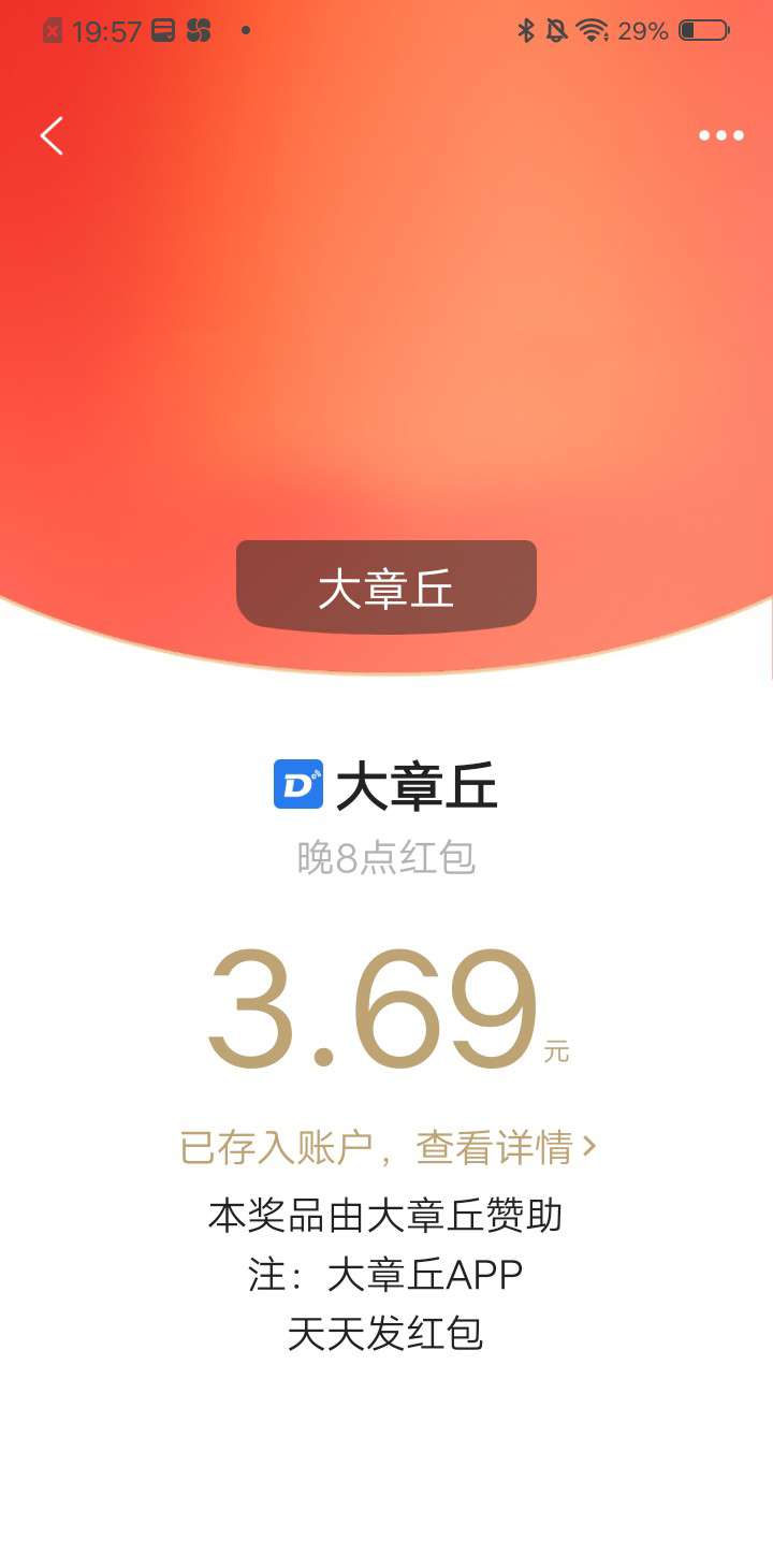 晚八点红包抢了一个3.69元算是最大的吧你抢了多少??