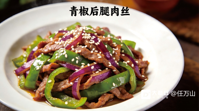 🥘 第四道:青椒后腿肉丝(用猪后腿瘦肉 | 寓意:日子红红火火)