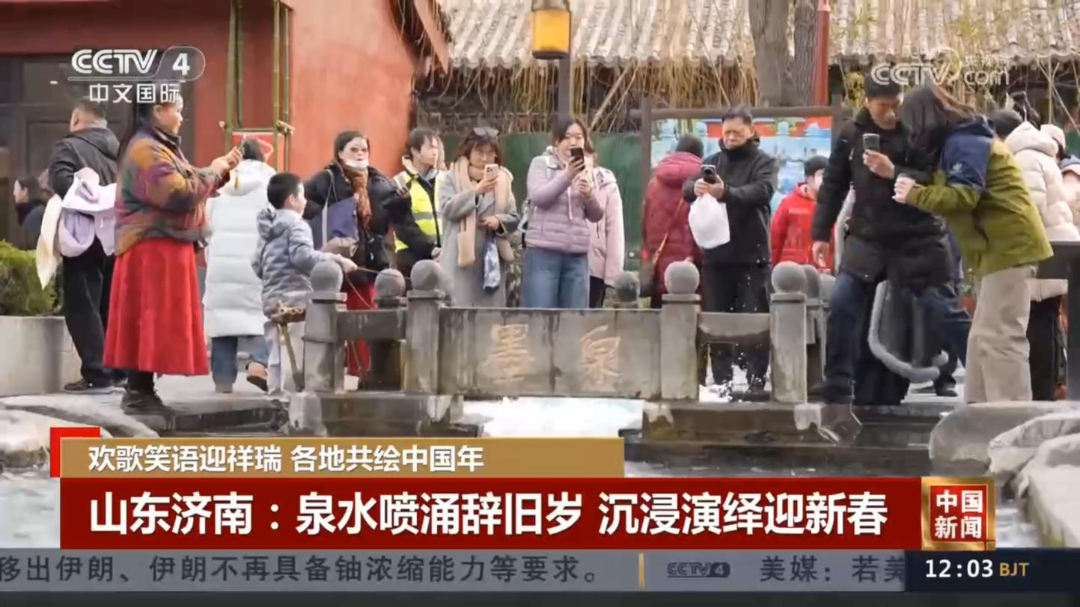 作为中国最具影响力的新闻栏目,2月16日,除夕当天,央视《新闻联播》以《欢乐祥和迎新春 神州大地暖意浓》为题,将镜头对准章丘百脉泉畔。画面中,泉水喷涌与民俗演艺交相辉映,向全国递出了一张亮丽的泉水文化名片。