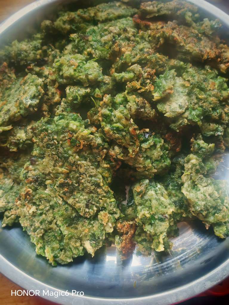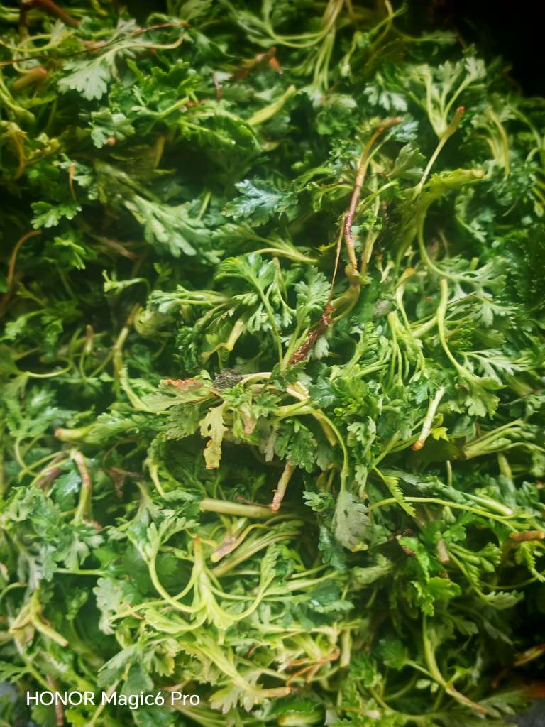 亲家给采来的菊花芽,我是很喜欢吃的。今天出去玩了一天,回来不做饭了,烙个菊花芽饼吃,洗净放上俩鸡蛋,面粉少许,烙的焦香酥脆,既当菜又顶饭。,咬一口满嘴都是春天的味道。