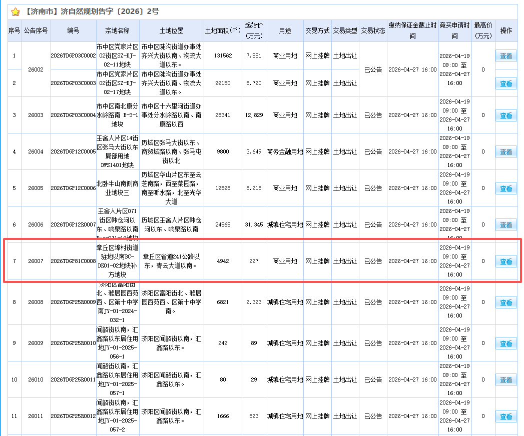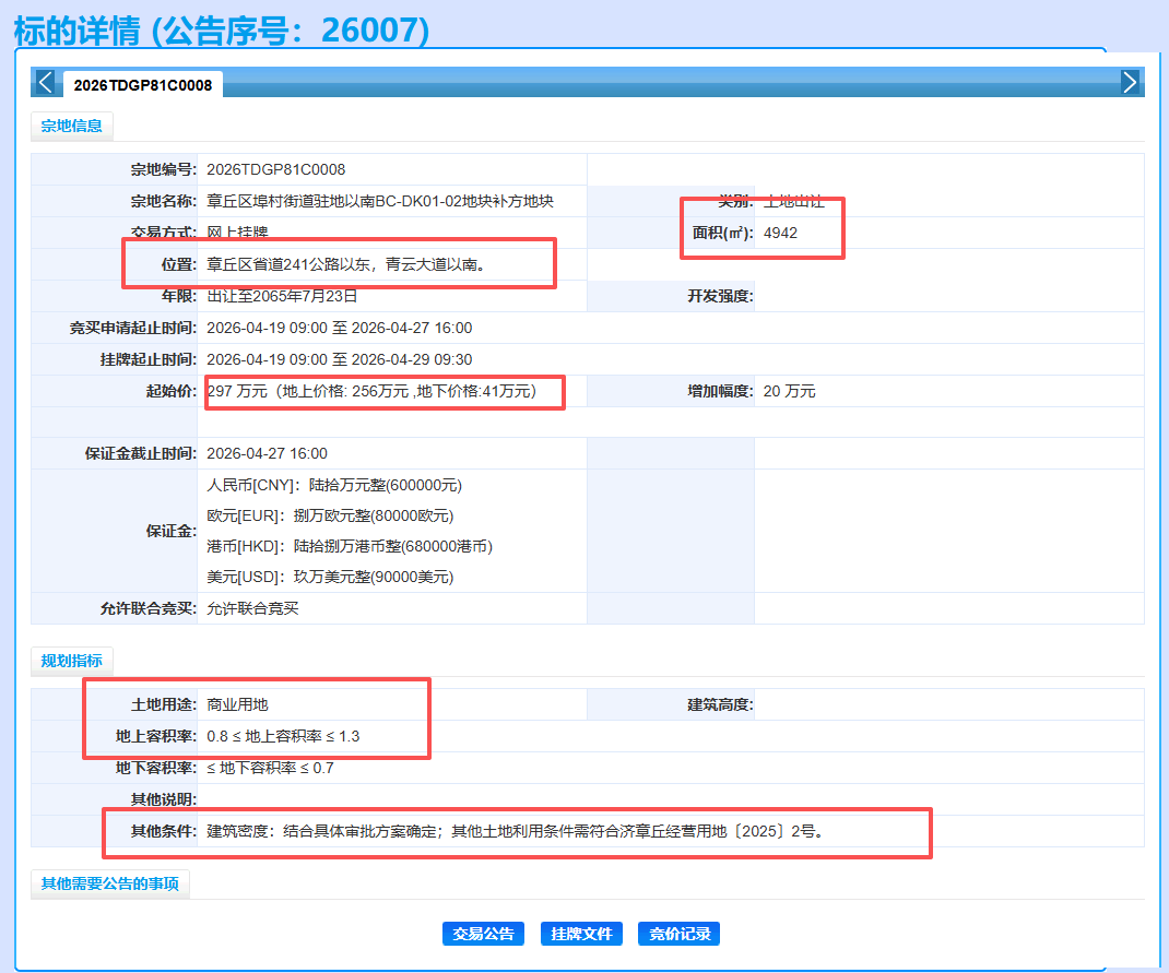 这块地不是章丘自己挂的,是济南全市统一挂牌的章丘地块,不是随便拿出来卖的普通商业地!