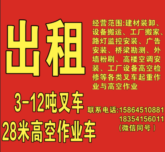 老白叉车,3-16吨叉车,28米高空作业车,诚邀您的合作。24小时用车热线18354156011