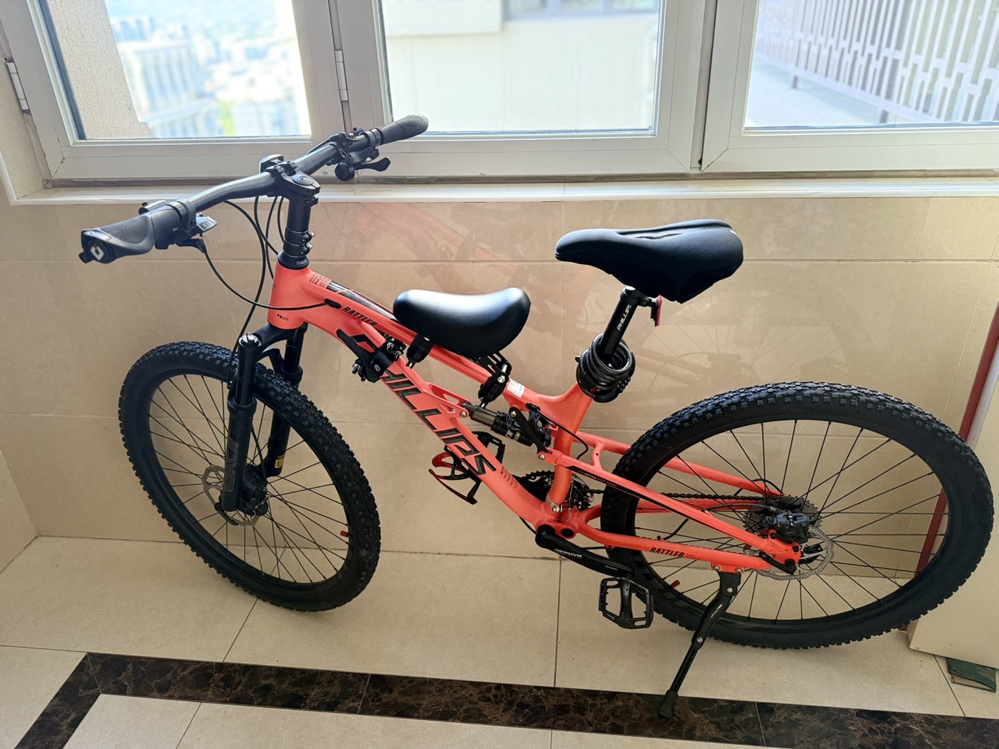 英国菲利普软尾山地车,27.5寸33速(适合165-190cm身高骑行),全车内置走线,前后油碟刹,禧玛诺变速器,带前叉锁,换了肉球握把,加高了把手,各种改装件,非常好骑。买了一年骑了三五次,车子接近全新。由于换公路车了,低价转给需要的朋友。(车上带的儿童座椅可以拆卸)喜欢的电话联系,上门看车