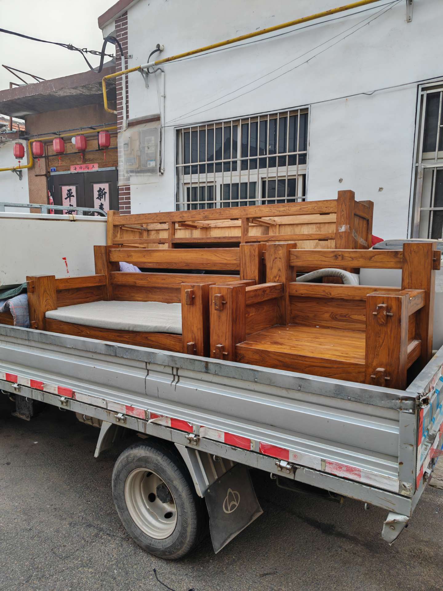 处理红木办公家具8件套。老榆木家具。老榆木佛龛,刺猬紫檀的茶桌。