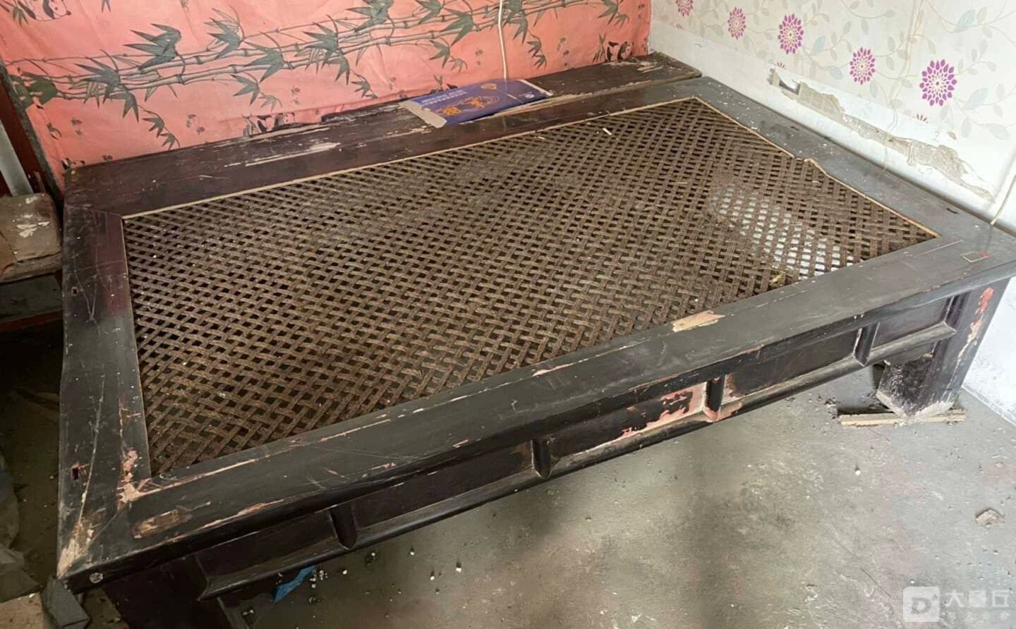 木质结构,藤编床面,整体保存完整,有年代感,适合收藏或展馆展示