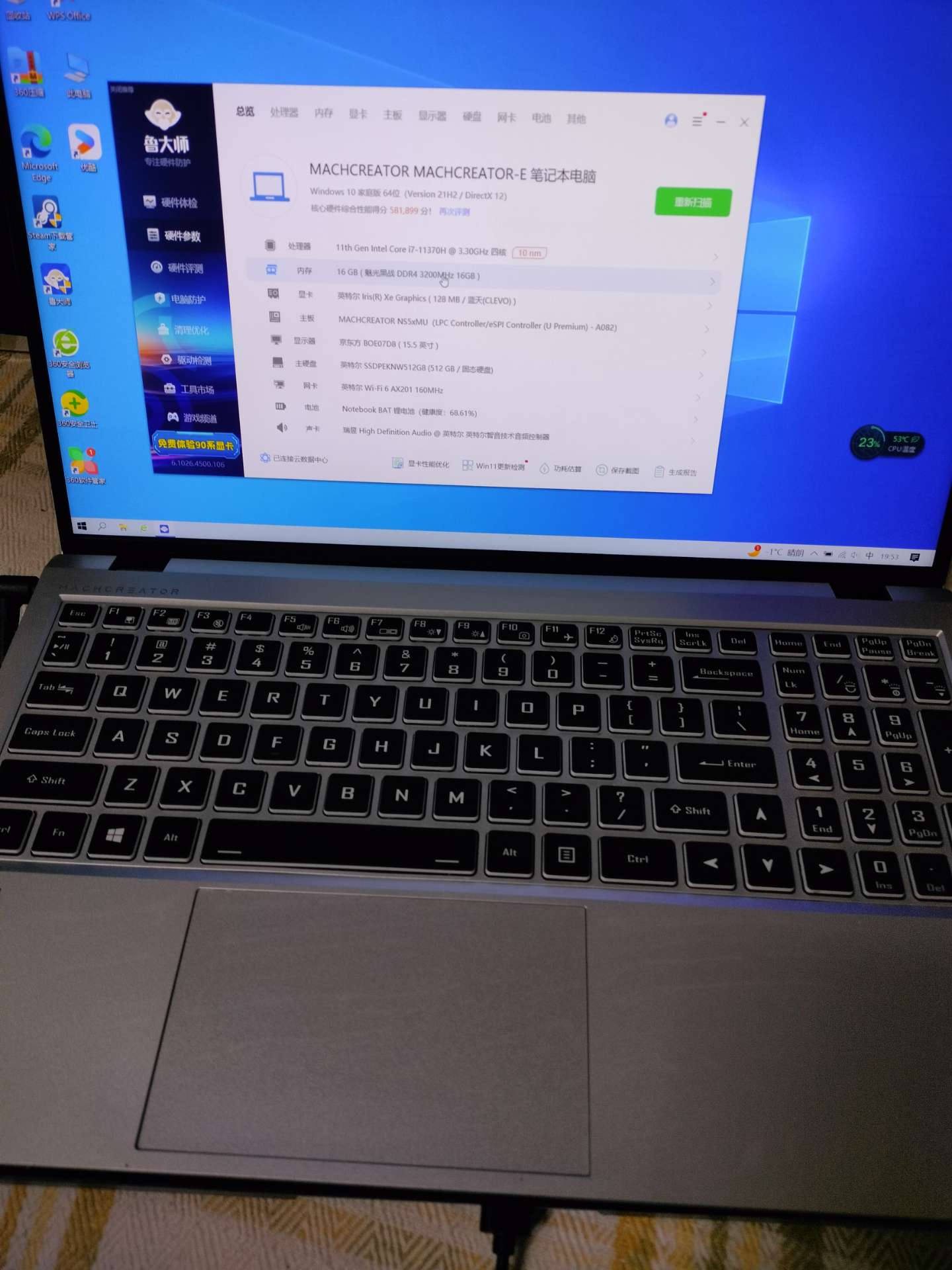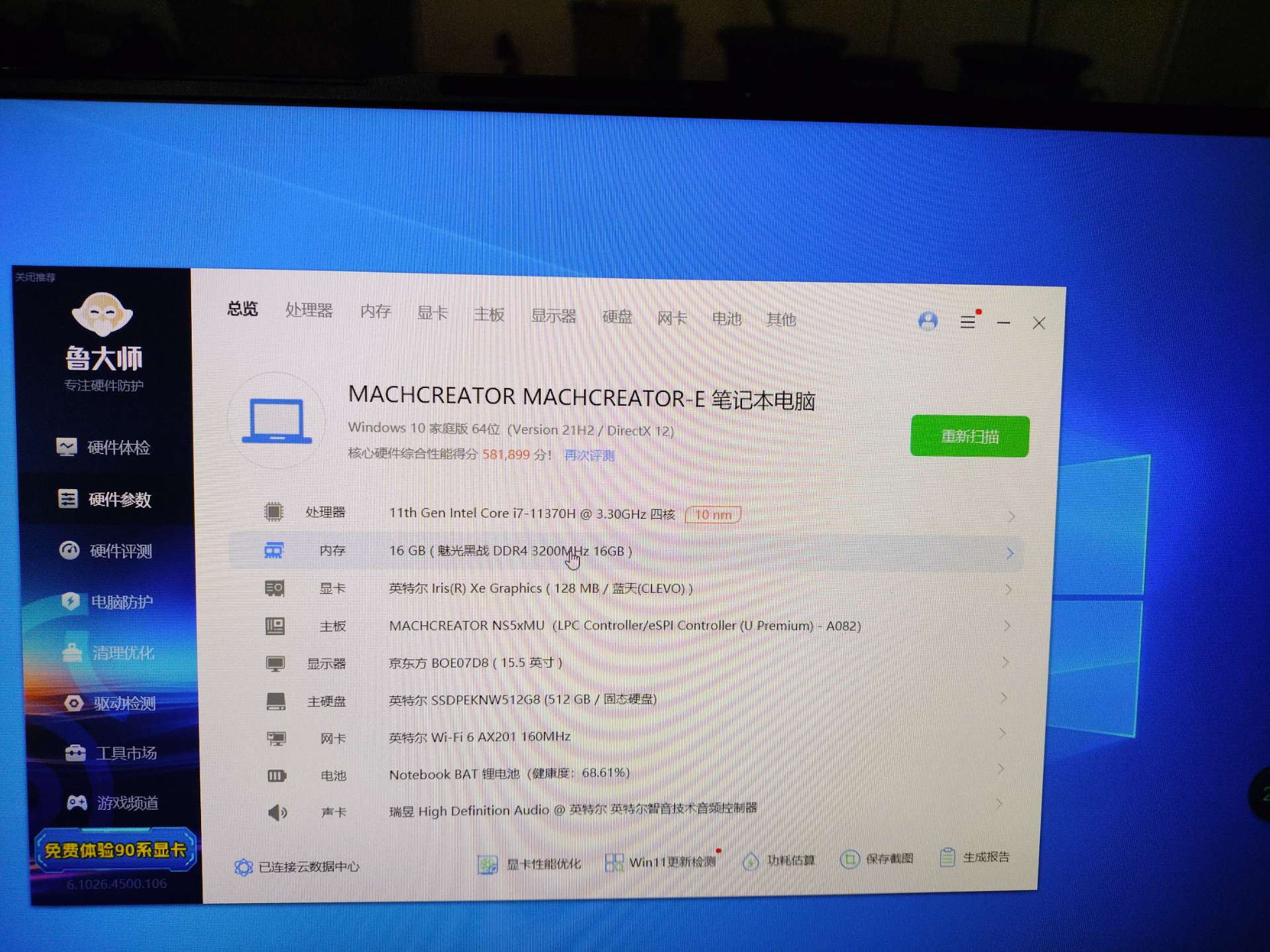 1590元 成色非常好 机械师创物者 i7-11370H 高性能游戏本cpu 性能超多13代低压cpu 16g3200mhz四代内存条 显卡也很好 512g nvme m2固态硬盘 跑58万多 适合游戏 ps 剪映 三维图 二维图 办公 15668412360微信同号