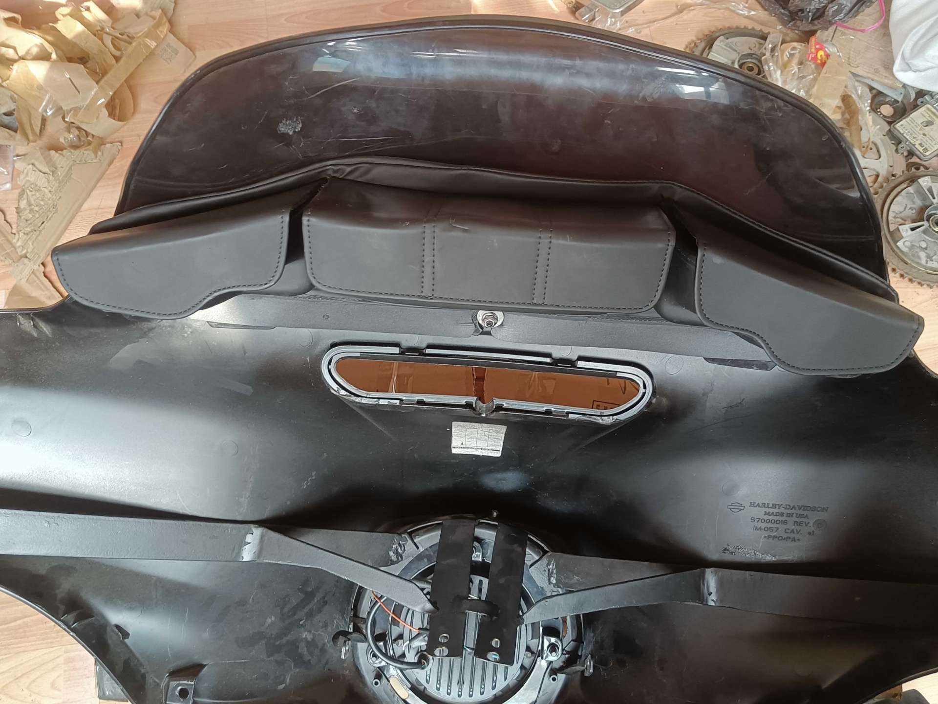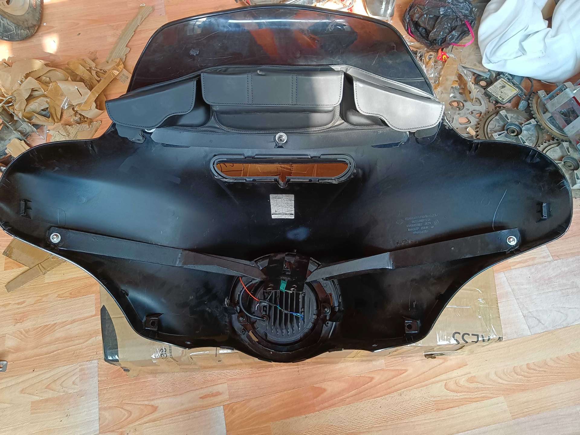 哈雷滑翔原厂外罩,带挡风跟车头包,内自改支架,大部分摩托车无损安装,2500普集自提,可免费帮忙安装。