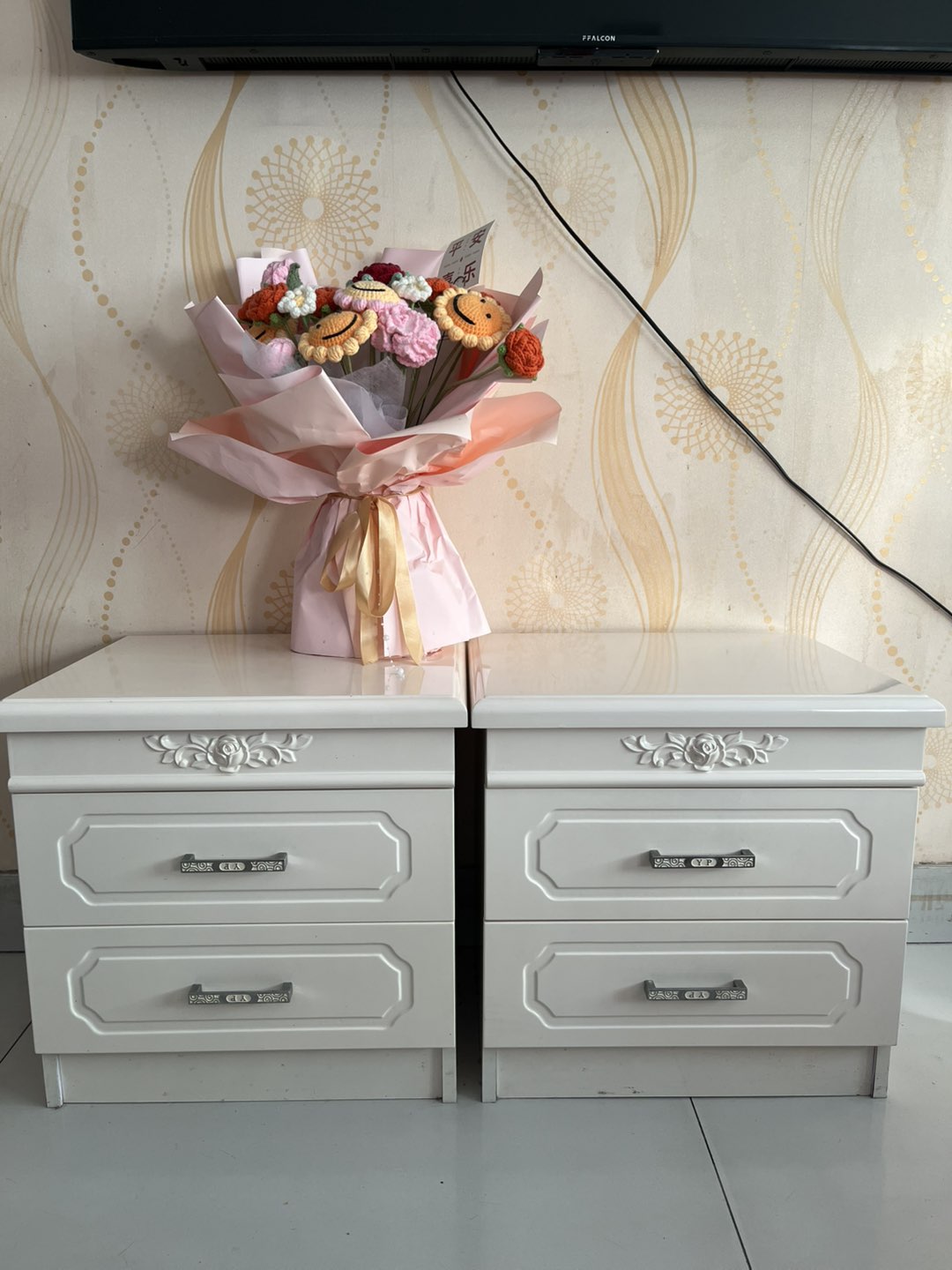 自用欧式烤漆床头柜一对,乳白色,八成新,地铁八号线清源大街附近,150元出