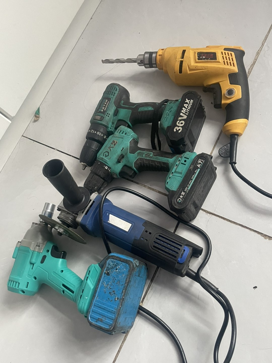 工业级大艺。微克士手电钻个一个大艺款电扳手一个角磨机一个插线手电钻一个价格不贵