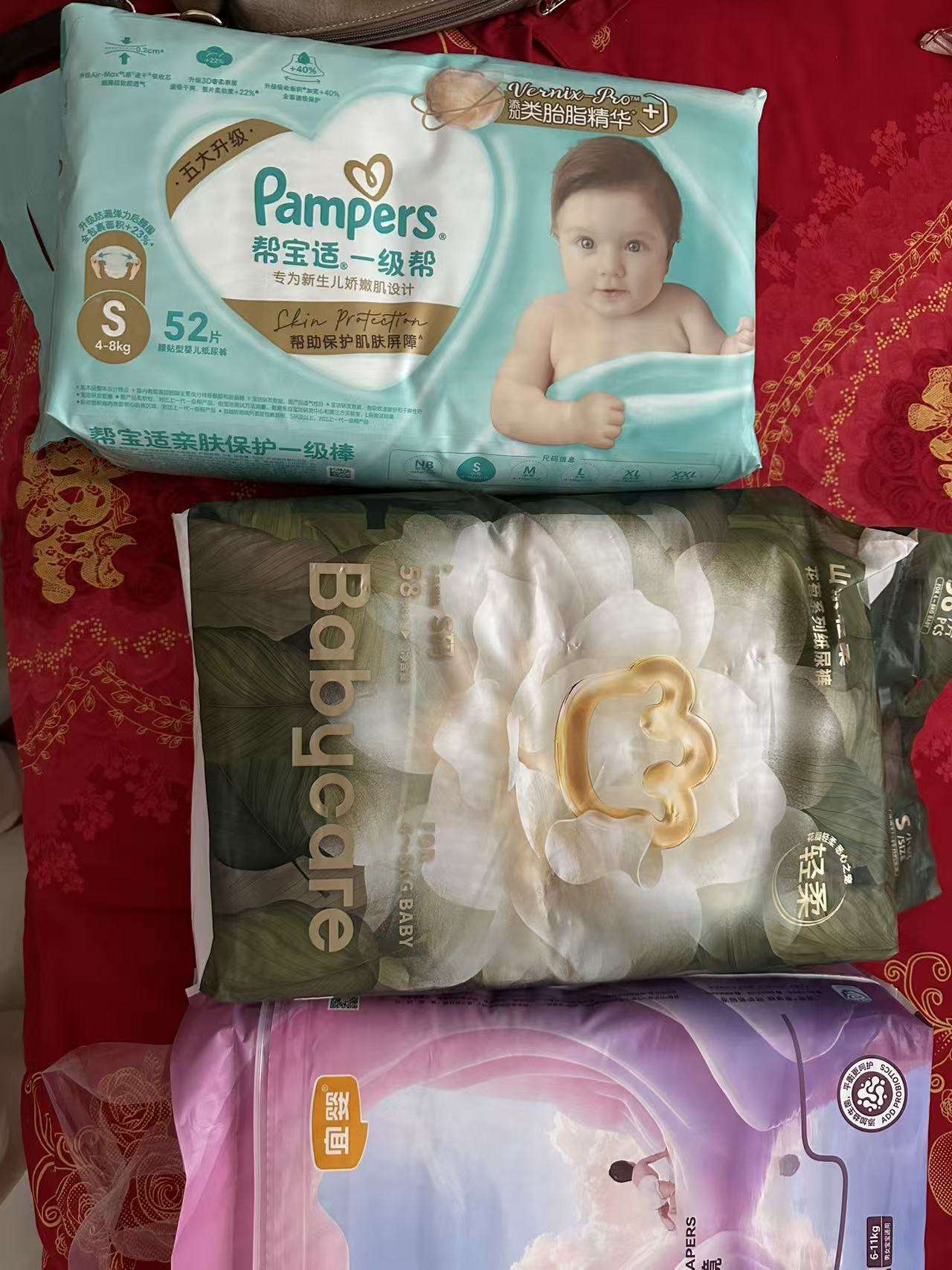 纸尿裤买多了,山茶花一包(S码),帮宝适一包(S码),好奇一包(S码),天空之镜一包(M码)打包一块便宜处理,150,可小刀
