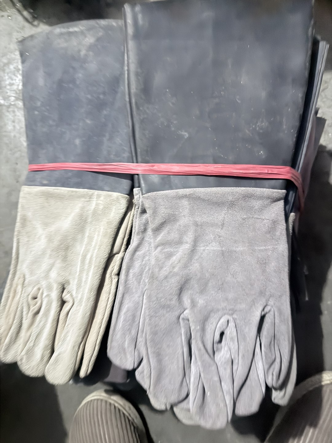 便宜出售28副长皮焊工手套,十来副短皮手套共100元有要的电话