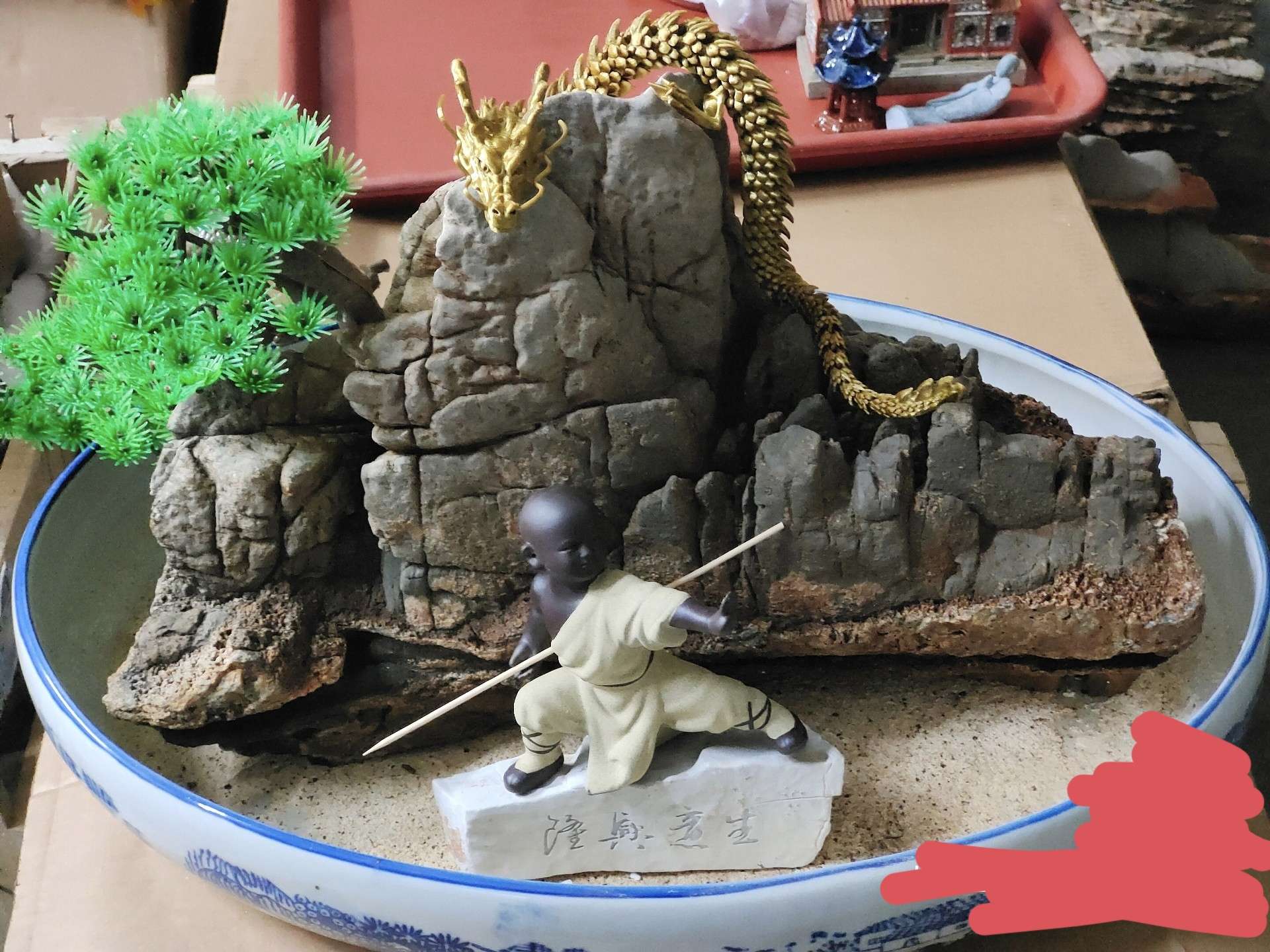 山水景观有山有水整块原石盆景盆或鱼缸造景在章丘附近可送货上门并布置景观。