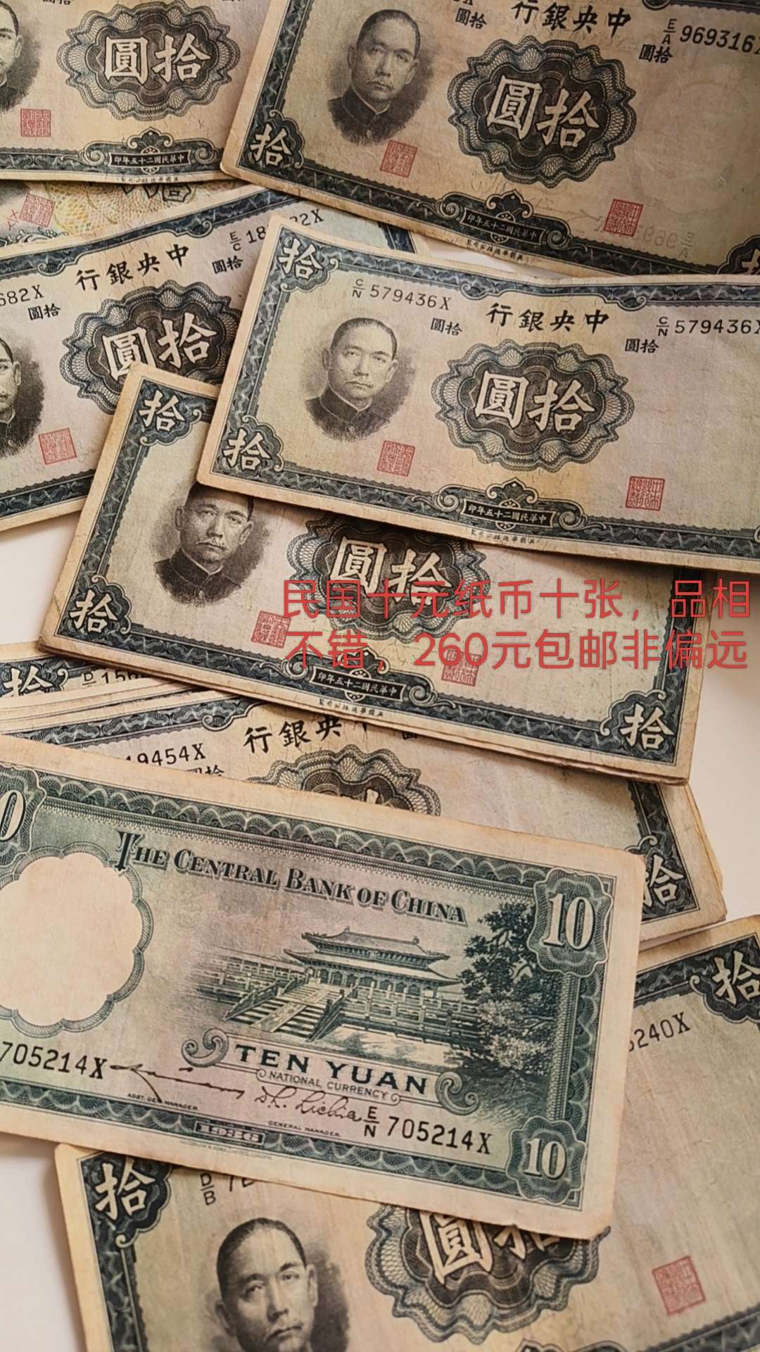 民国纸币十元的,保真包老,十张起,二百六包邮非偏远