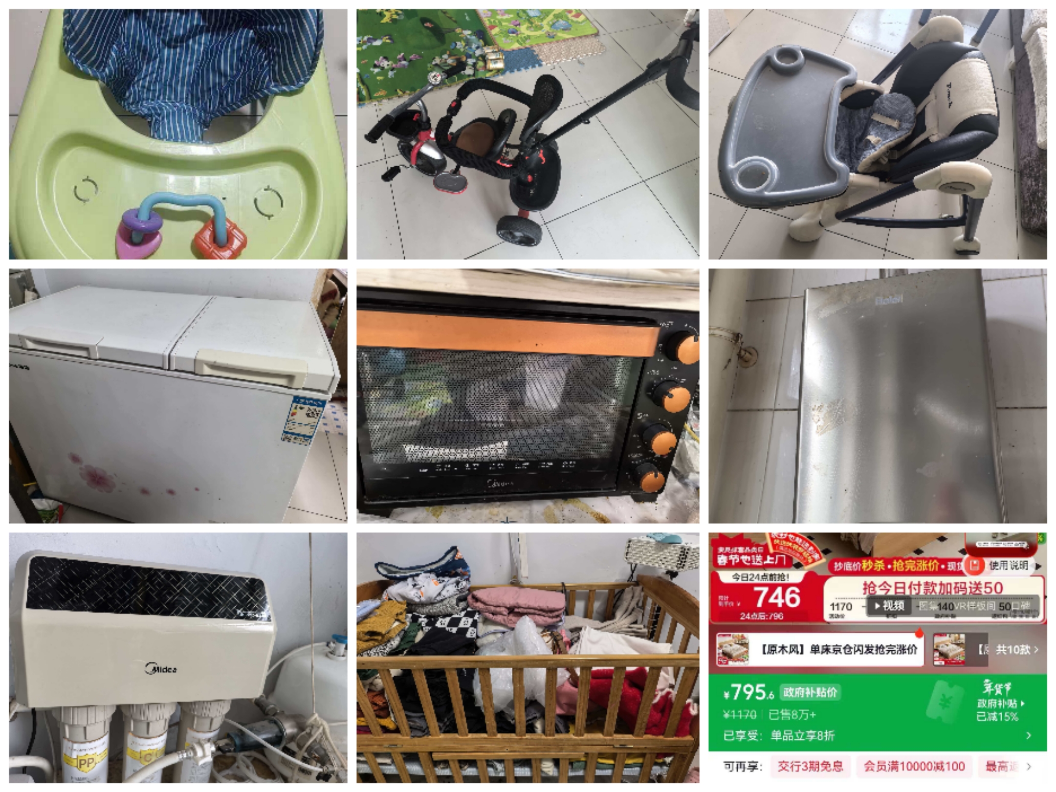 电脑、打印机、路由器、键盘、鼠标、耳机、整箱网线、各类线材、手机充电器、公牛充电线、桌子、货架等等,全部低价处理。冰柜、烤箱、1.8×2米床、沙发、净水器、天然气热水器、儿童餐椅、遛娃车、儿童三轮车、婴儿床,全部处理,自提、自提、自提。